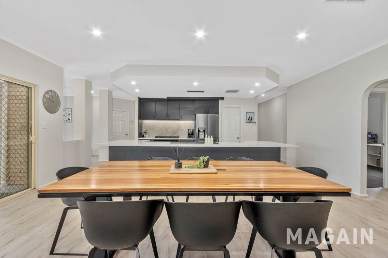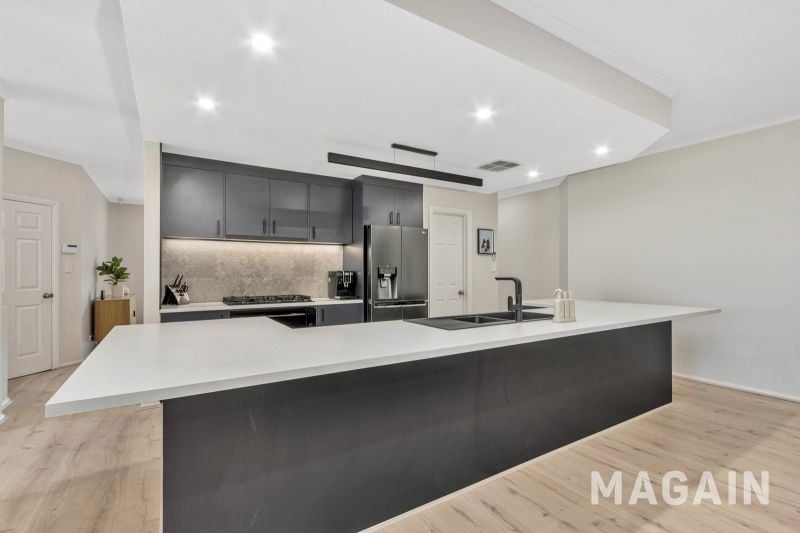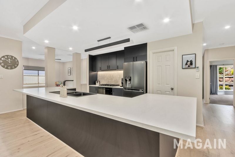 At the heart of the home sits a chef's kitchen equipped with a premium 900mm oven, gas cooktop, dishwasher, and a generous walk in pantry-perfect for those who love to cook and entertain. The open plan living and dining area flows seamlessly to the outdoor entertaining zone.