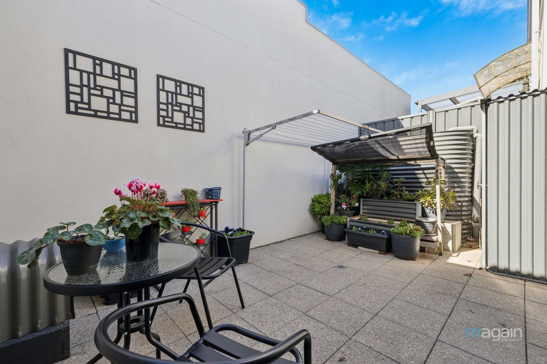 Sliding door access from the lounge to the courtyard, paved patio and clothesline