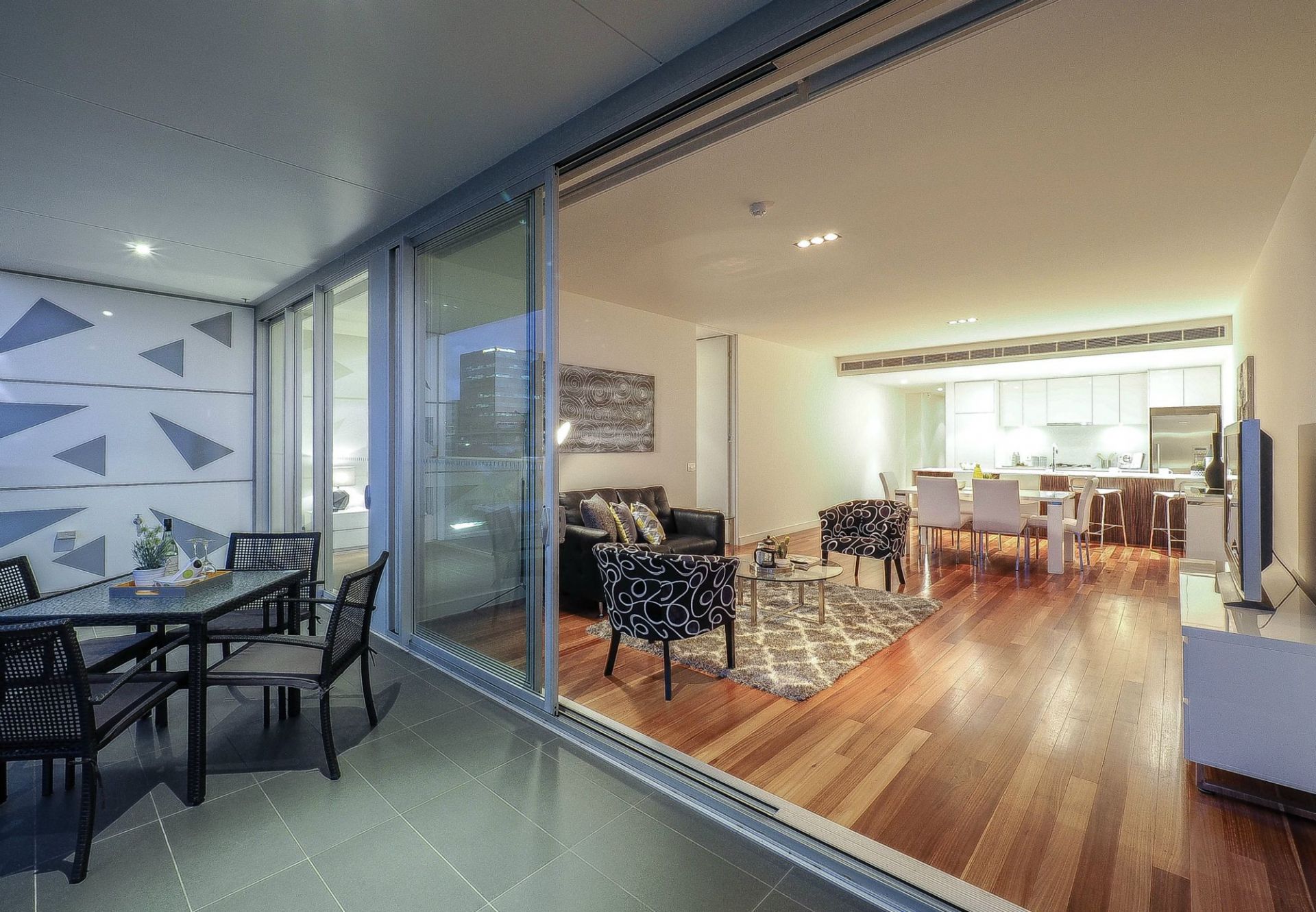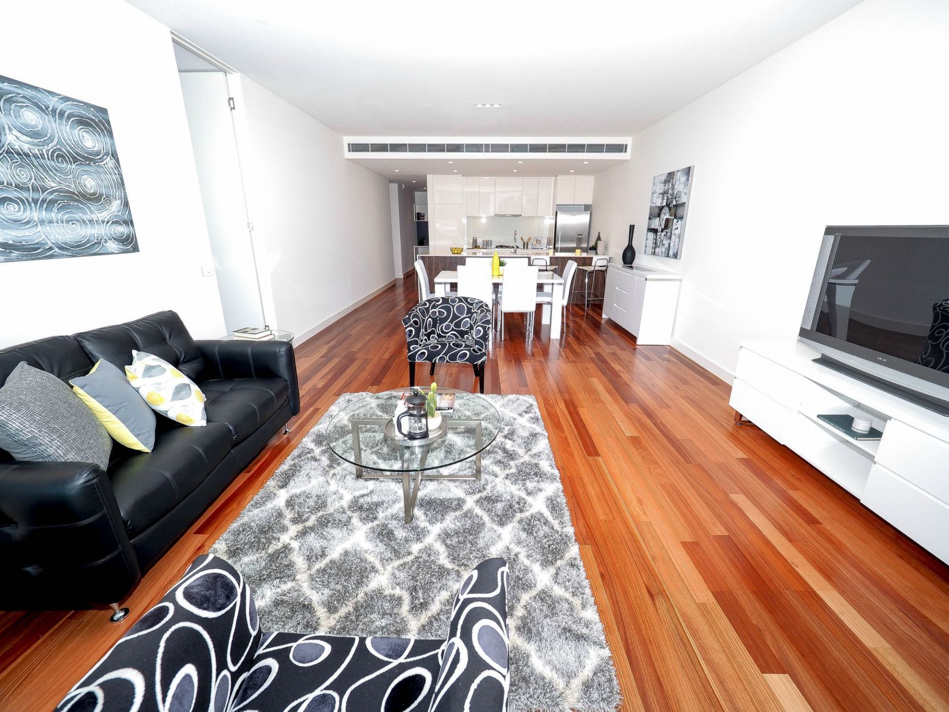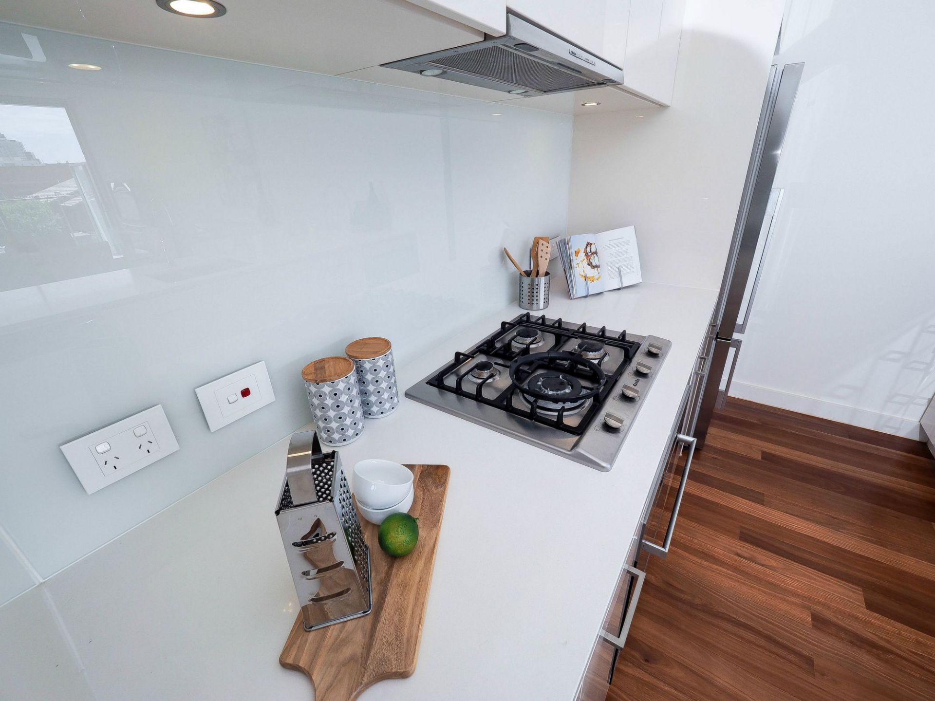 Only the highest quality of fixtures & fittings have been used with Tasmanian Oak timber flooring, Miele appliances, Caeserstone bench tops, Daikin air conditioning and double glazed windows all allowing the very best in low maintenance, high excitement city living.