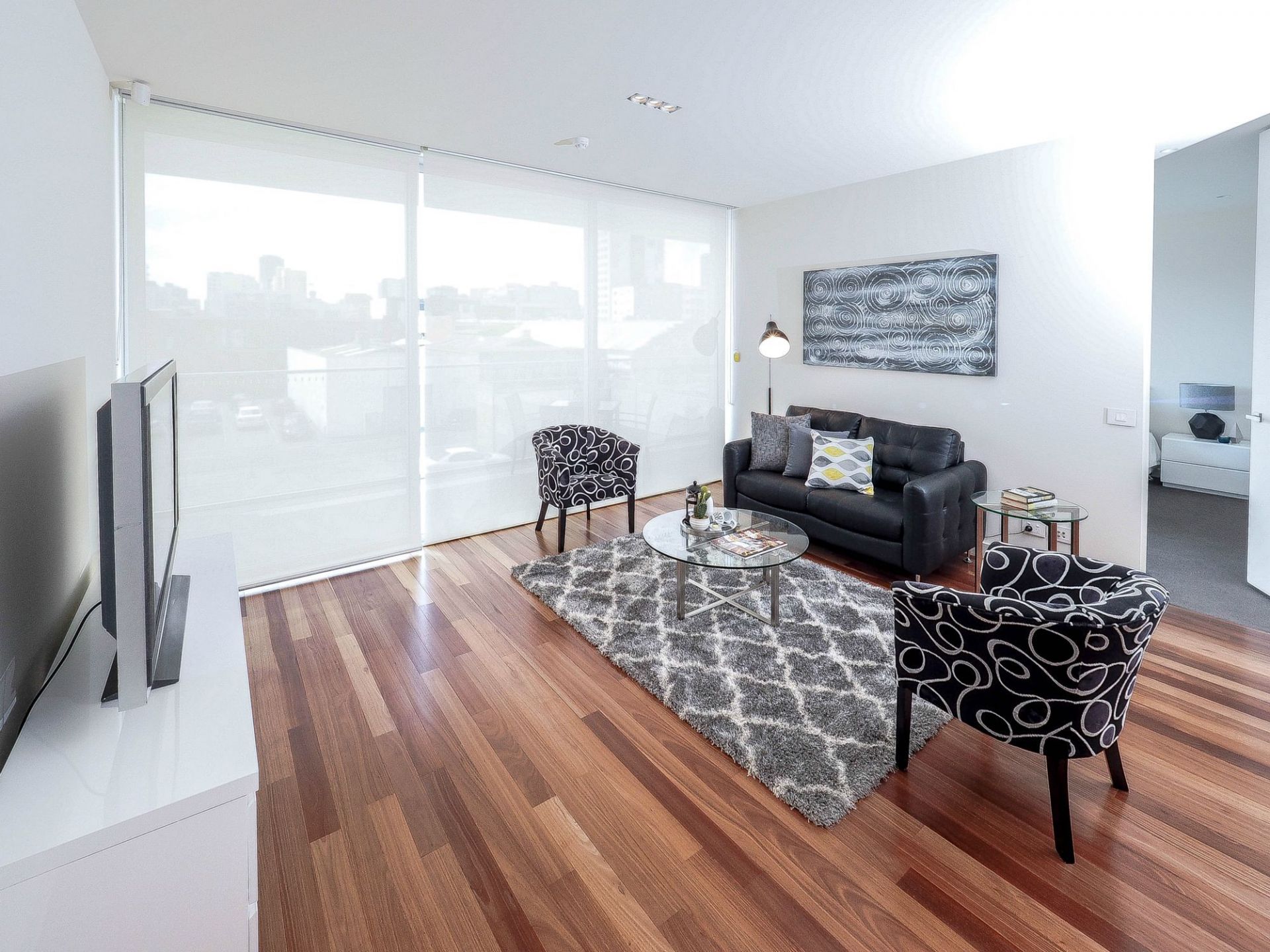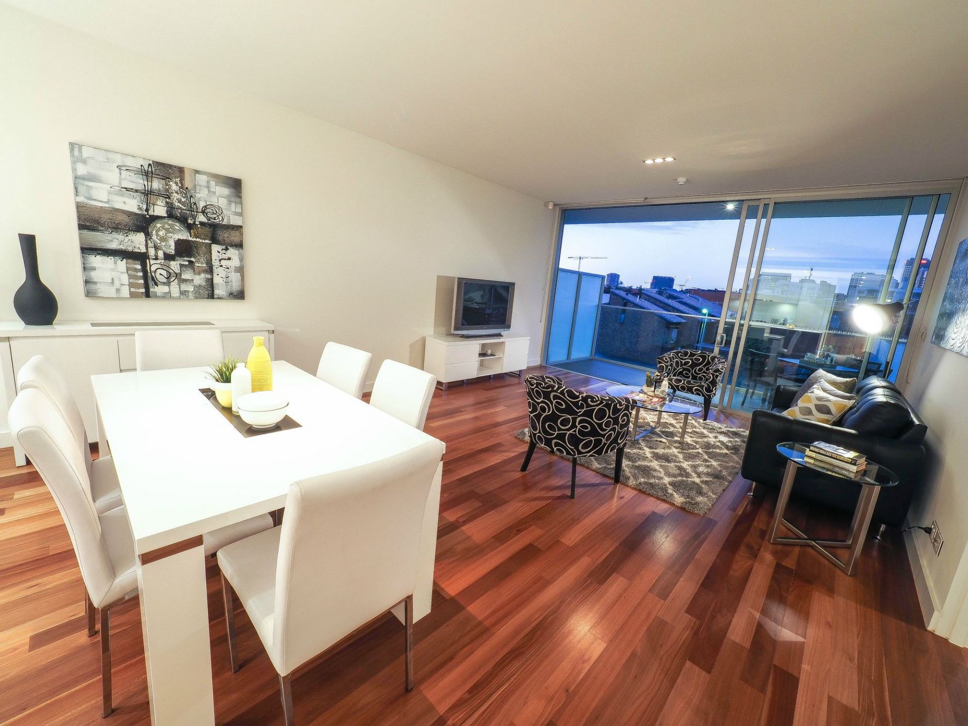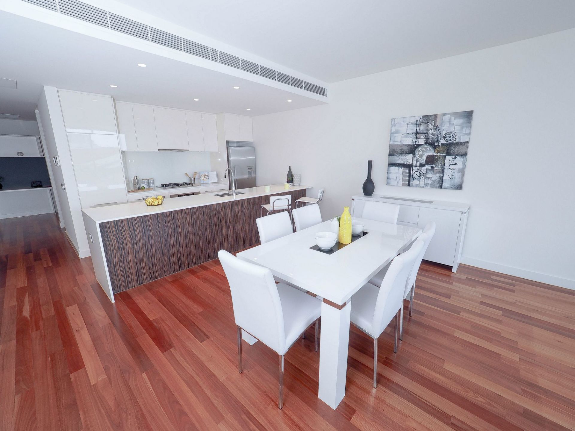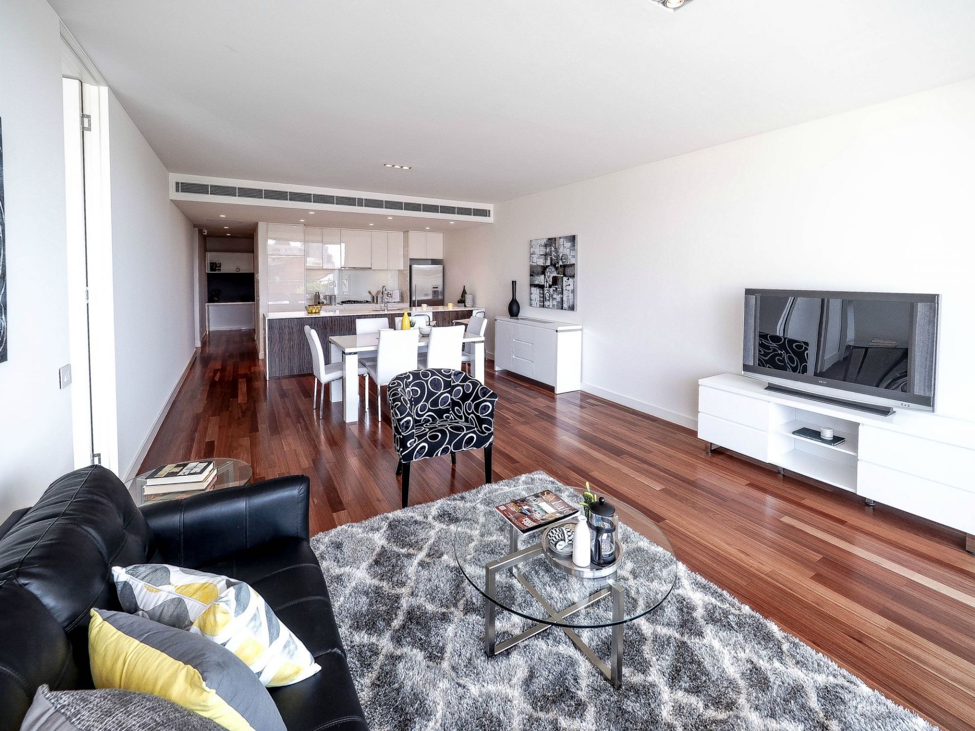 Only the highest quality of fixtures & fittings have been used with Tasmanian Oak timber flooring, Miele appliances, Caeserstone bench tops, Daikin air conditioning and double glazed windows all allowing the very best in low maintenance, high excitement city living.