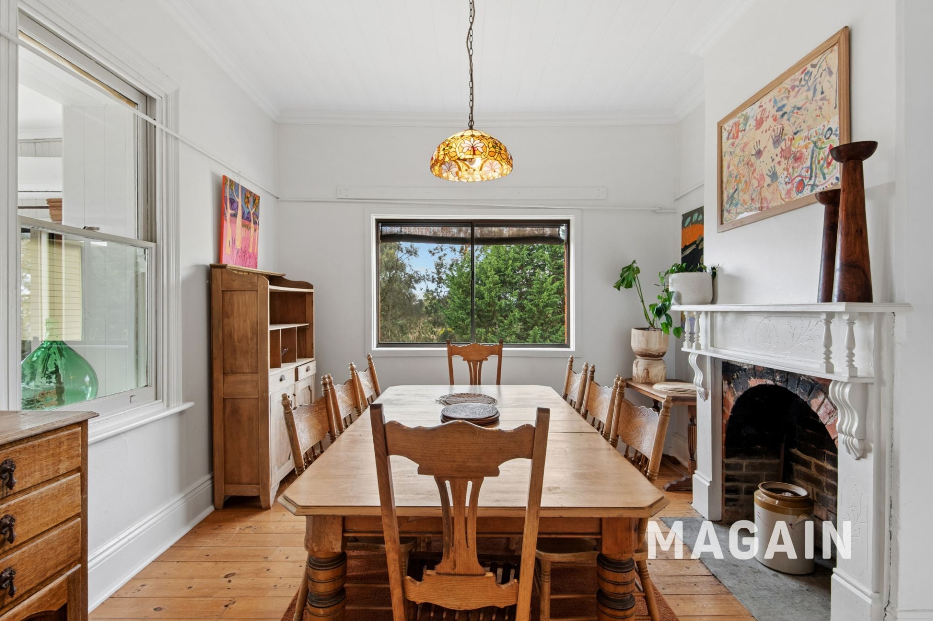 The original homestead reveals its heritage through a combination of slate and original timber flooring, soaring ceilings, and charming period details. A traditional entry with a classic split door opens through to the main bathroom, complete with an iron clawfoot bath and separate shower. The central country-style kitchen is a focal point of the home, again perfectly positioned to take in the picturesque surrounds. Features include warm timber cabinetry, extensive drawer storage, dishwasher, wall oven, electric cooktop, and double sink. Adjacent, the formal dining room is both elegant and inviting, centred around a vintage fireplace and offering a refined space to entertain while soaking in the stunning scenery. Three additional bedrooms are housed within this section, each brimming with character. Bedroom four features a fireplace with an ornate mantle.