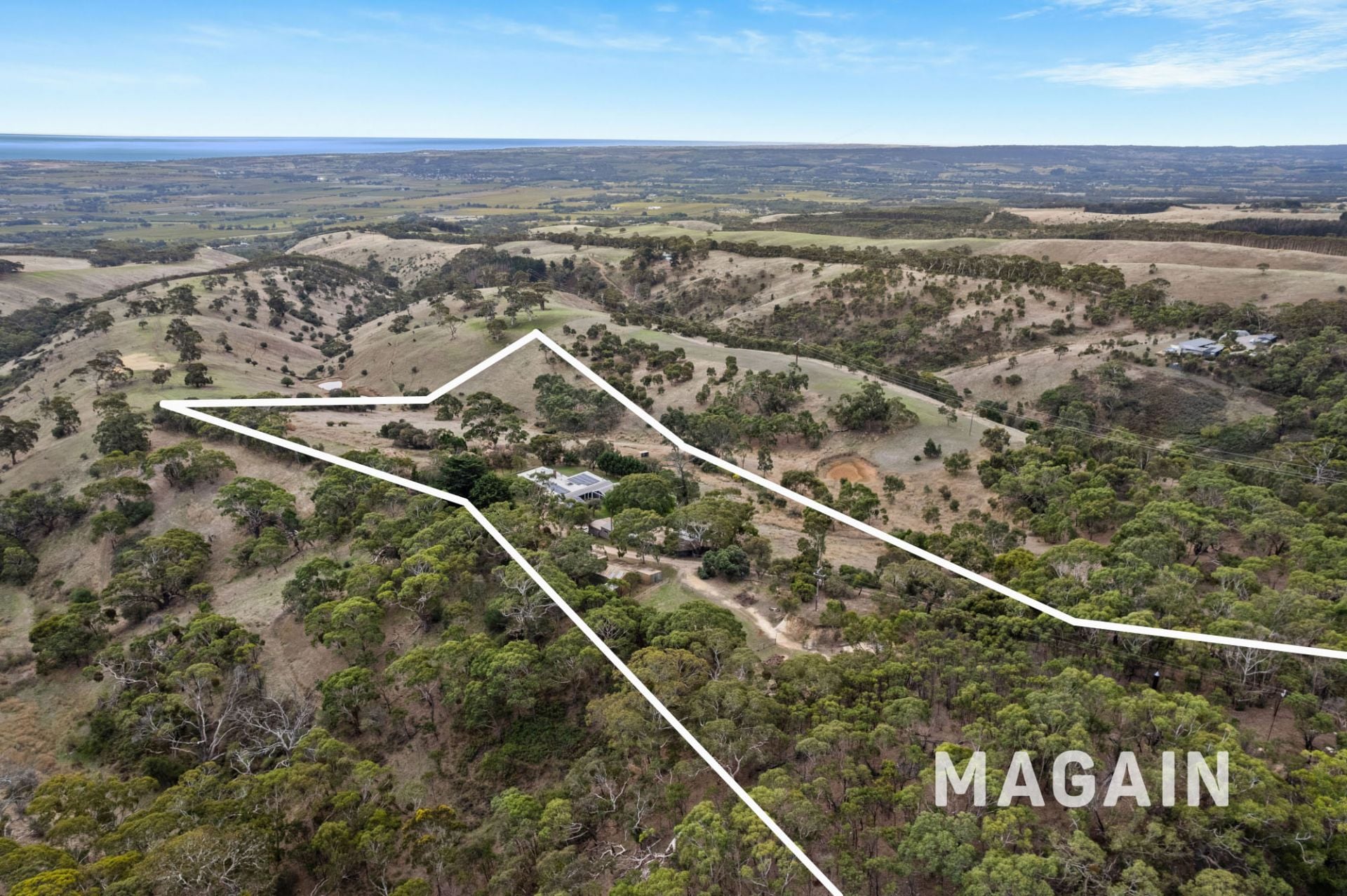 Entering the property, native scrub and vegetation give an immediate sense of tranquility as you leave the outside world behind and beckon you further. Down the driveway your attention is drawn to the dazzling views over the Willunga basin and the ocean beyond, as you pass the home's multiple usable storage areas, horse yards, stables and utility rooms, before arriving at the parking area and main dwelling.