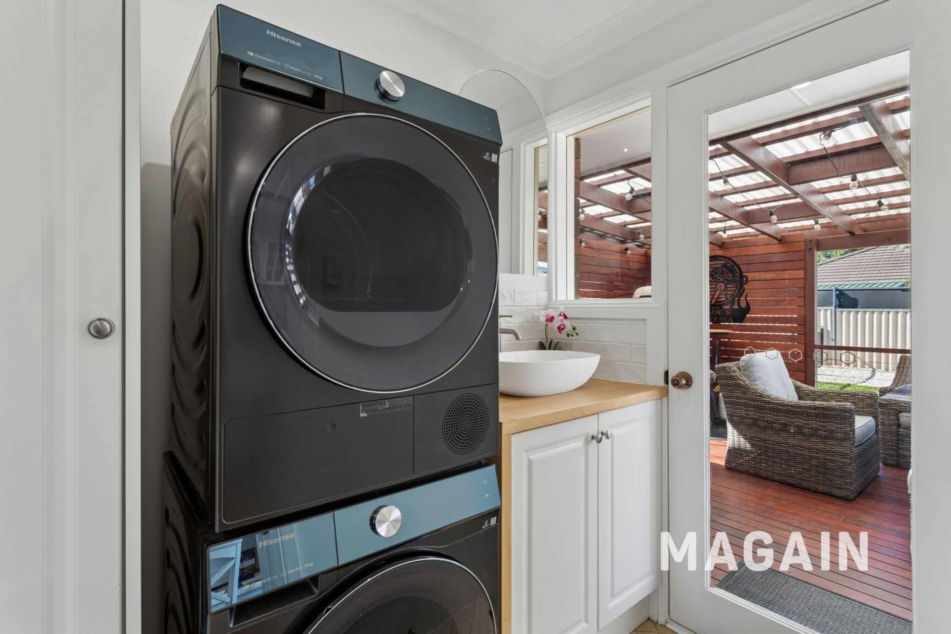 The floorplan has been carefully considered for everyday functionality, with all bedrooms positioned close to the main bathroom and laundry. The bathroom is well-appointed with a vanity, walk-in shower, and toilet. The laundry provides direct access to the outdoors, enhancing practicality for daily living. An additional separate toilet adds further convenience for family and guests.