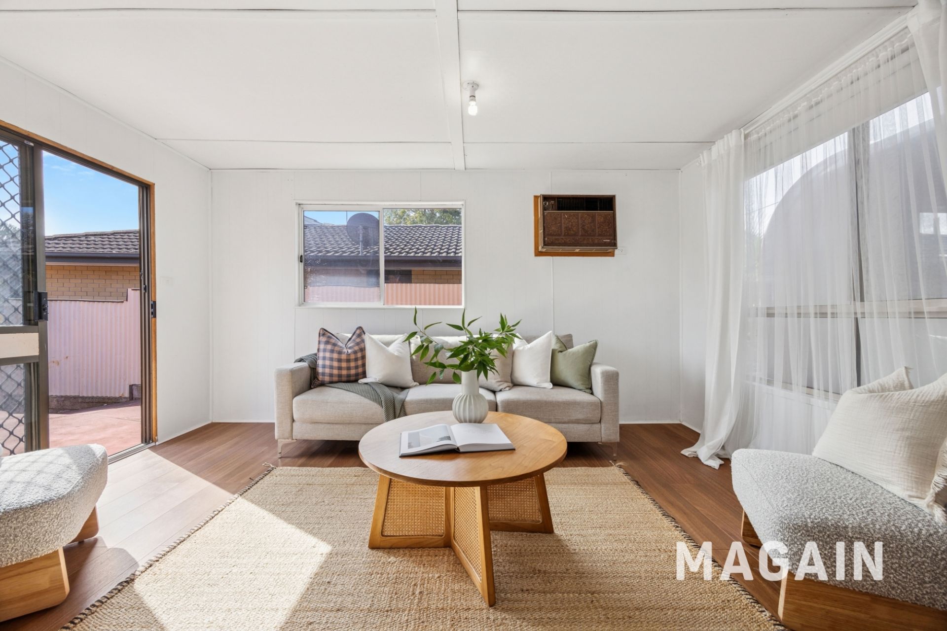 The main living area is cozy and inviting, with the added warmth of a combustion heater, perfect for the cooler months. Adjacent to the main living space, the family room offers additional room for relaxation or entertainment.