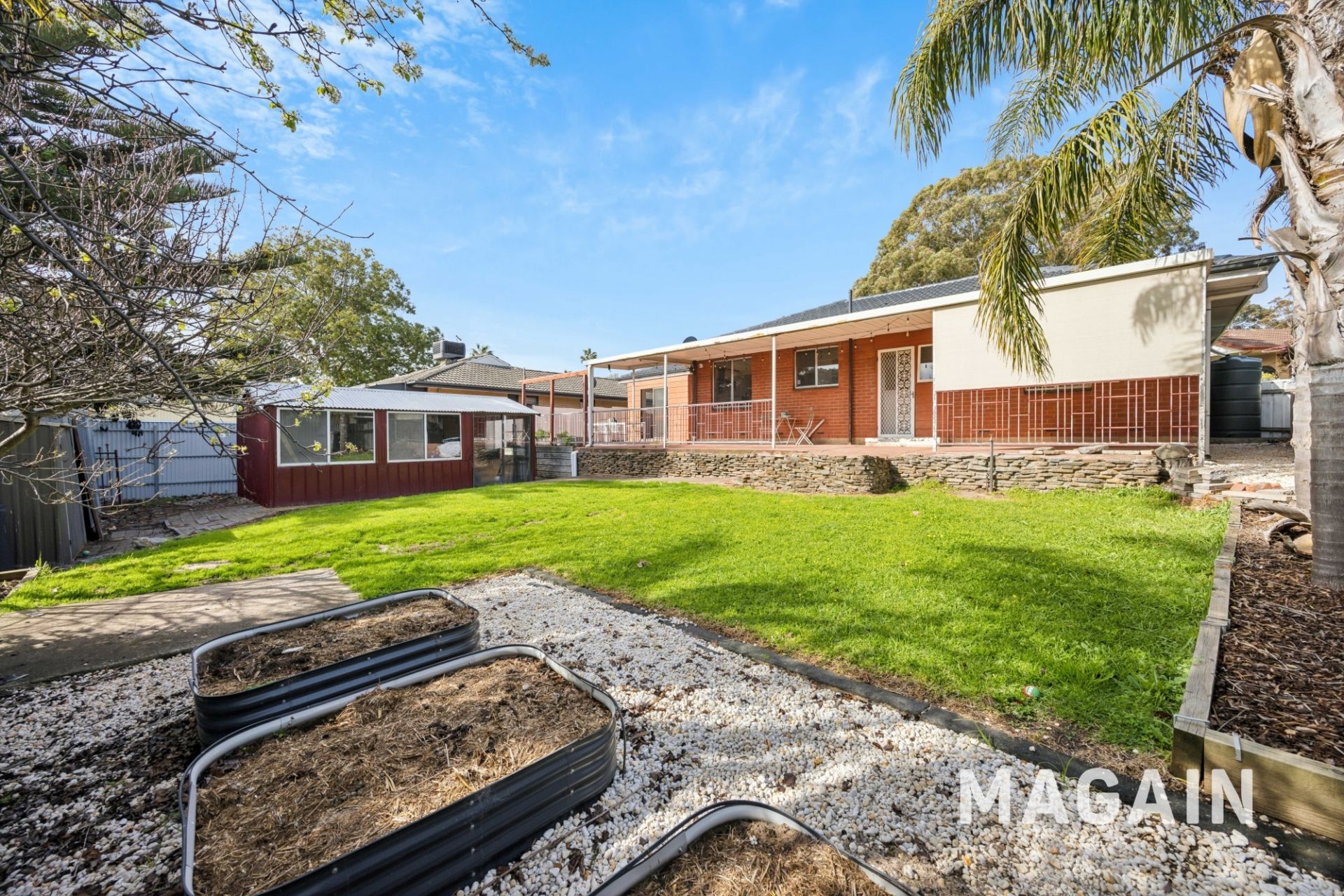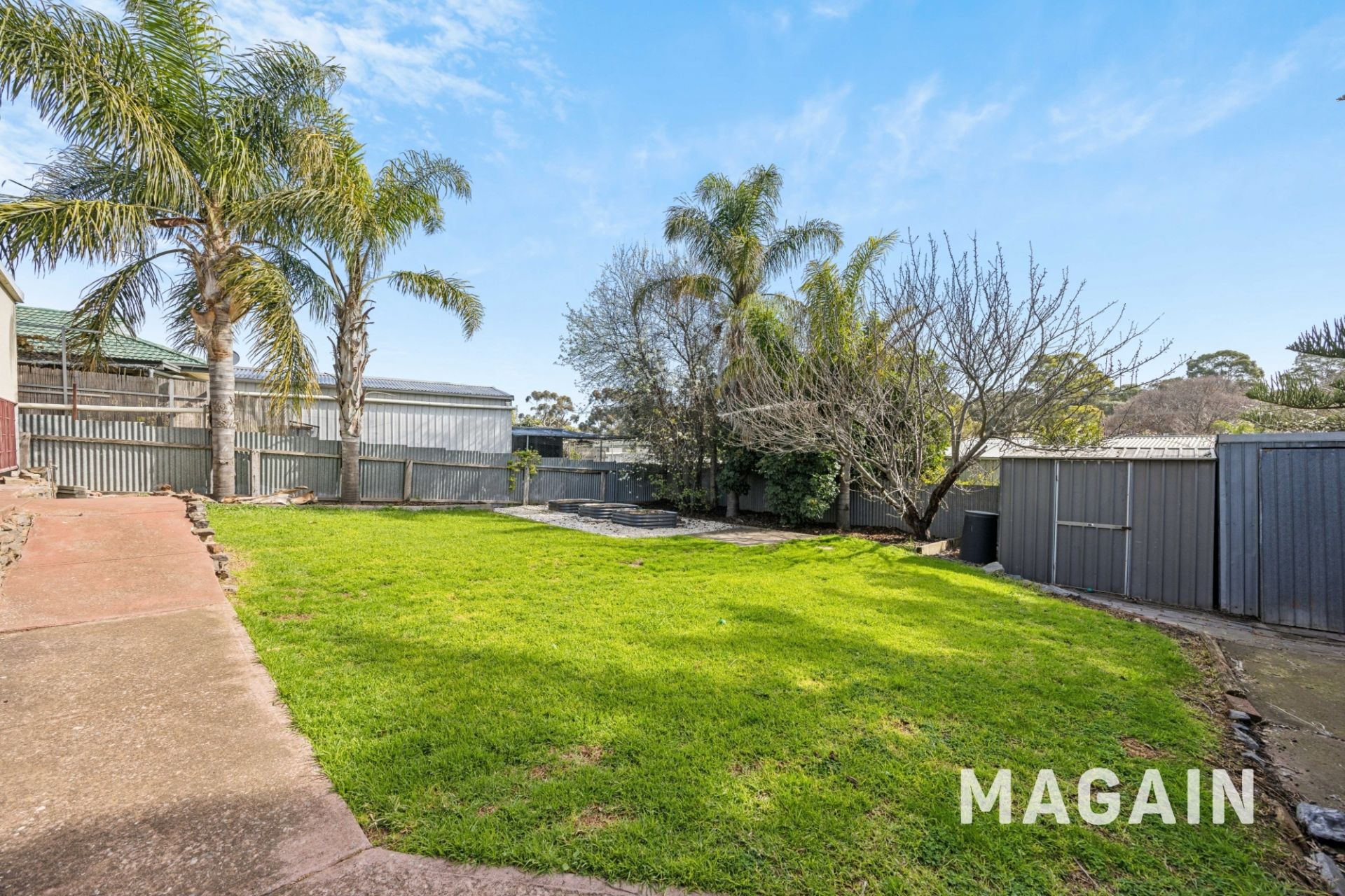 Step outside into the spacious outdoor entertaining area, ideal for hosting family gatherings or enjoying quiet moments outdoors. A large shed and an additional garden shed provide plenty of space for tools, equipment, or storage needs. The grassed area is perfect for family pets or children to play, offering a safe and fun environment.