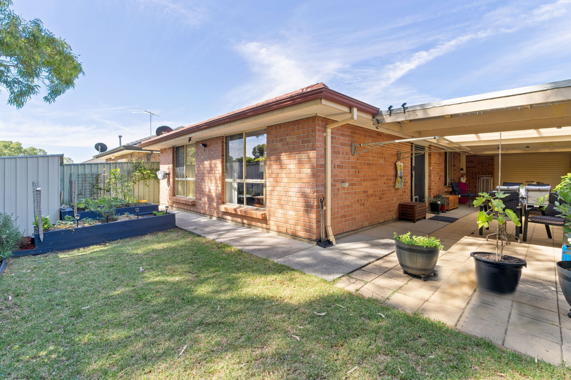 To the rear of the home is a great area to entertain under cover in the veranda area which over looks the low maintenance yard complete with planter boxes perfect for a veggie patch.