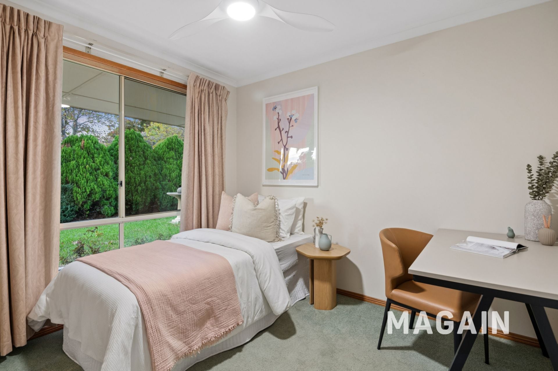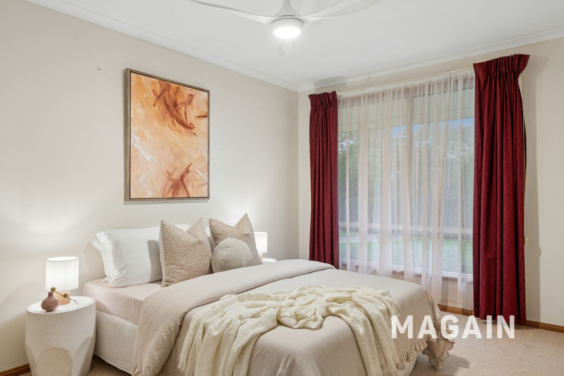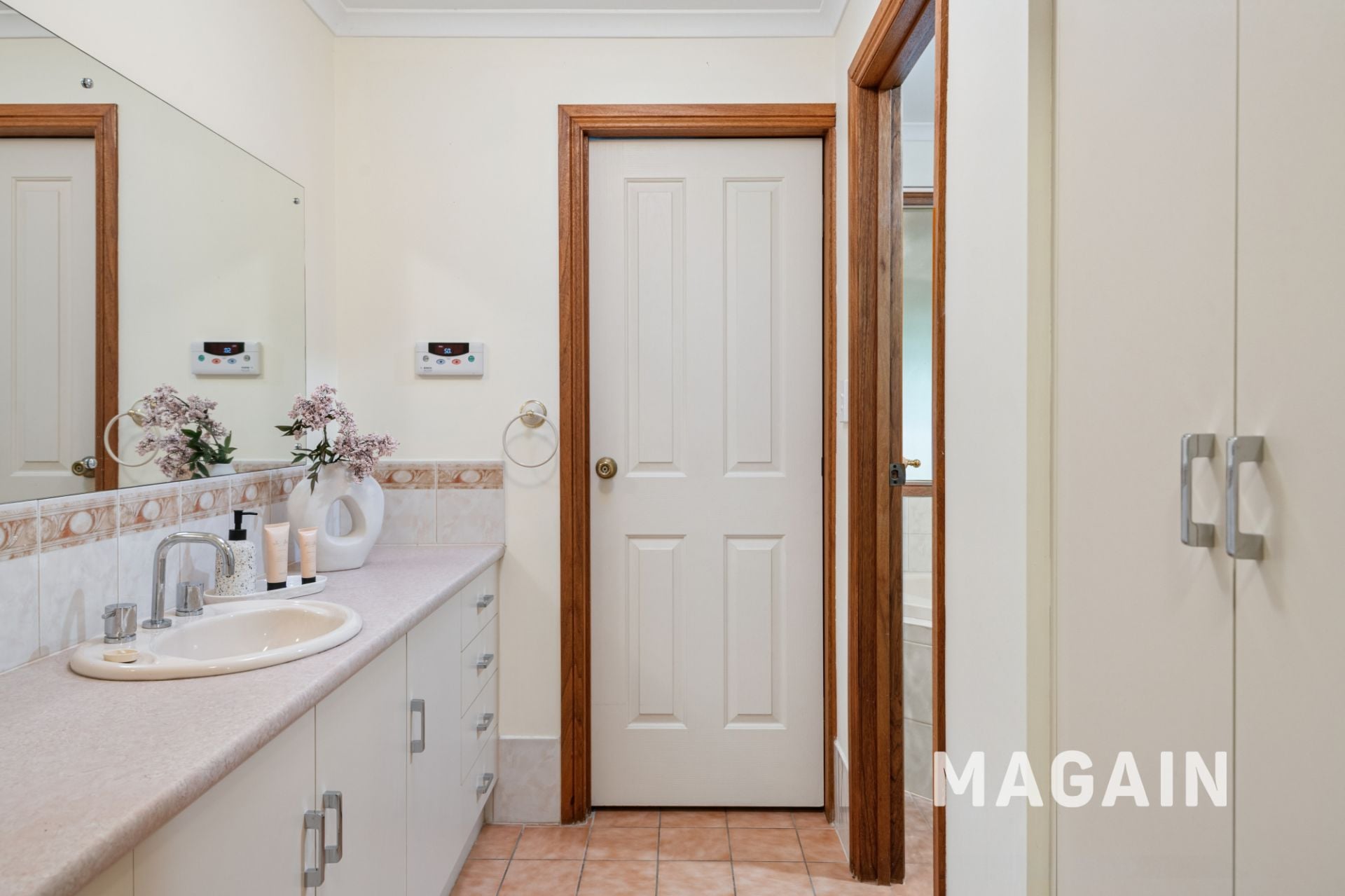 Accommodation is both flexible and generous. Bedrooms two and three are well-sized with ceiling fans and built-in robes, serviced by a neat and practical three-way main bathroom. A separate laundry provides external access to the rear yard. At the end of the hallway, the main bedroom offers privacy and comfort with a walk-in robe, ensuite and ceiling fan. A fourth bedroom at the front of the home also includes built-in robes and could easily function as a home office or study.