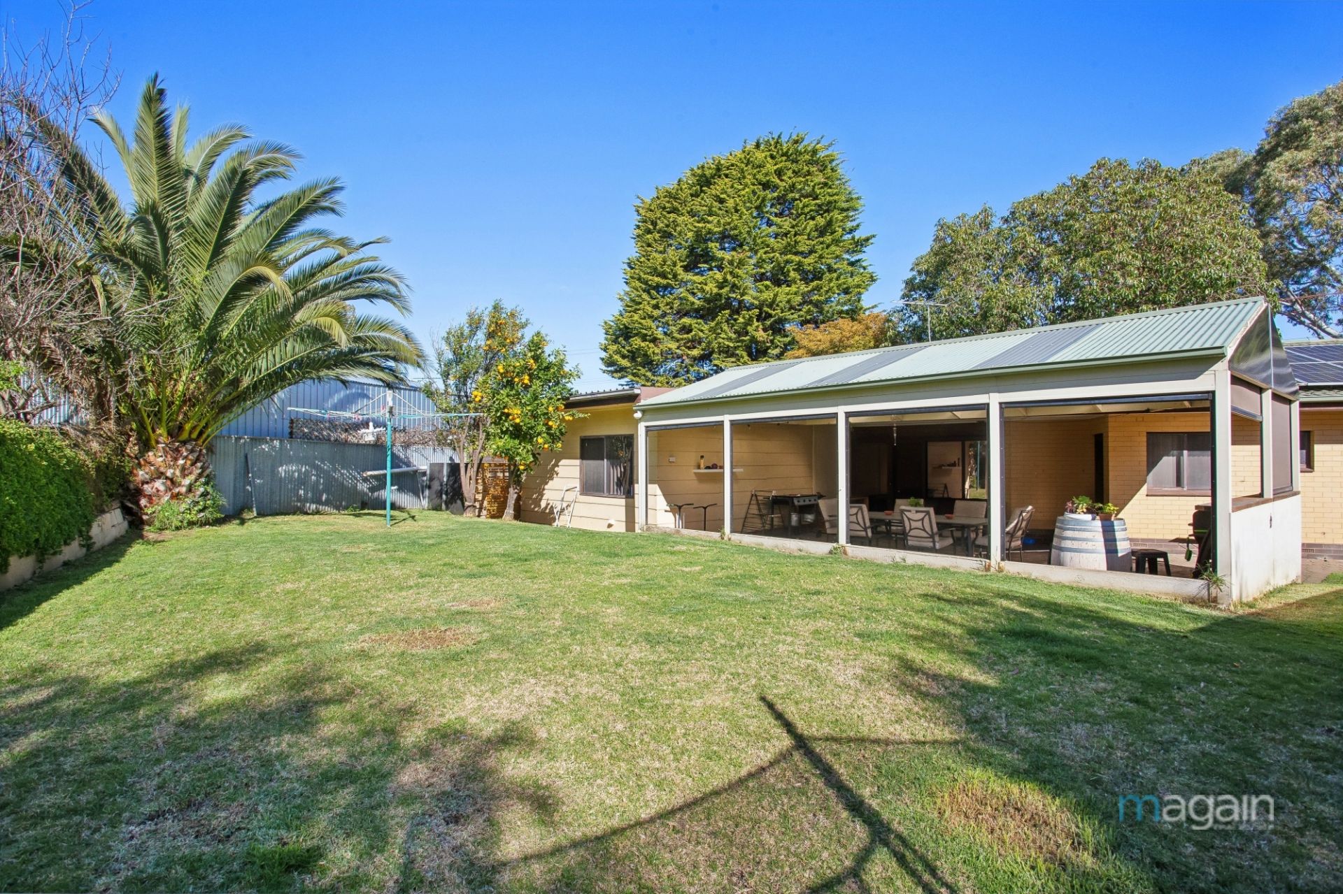 The standout feature of this property is its expansive yard. A paved entertaining area, covered by a pergola, overlooks a spacious lawn, creating an ideal setting for outdoor gatherings. A double carport with a panel lift door leads to a rear garage with a pit, complemented by drive-through access from the front via a secure electric gate. Additional amenities include a tool shed, two rainwater tanks, gas instantaneous hot water, a 6.6kW solar panel system, and NBN connectivity.