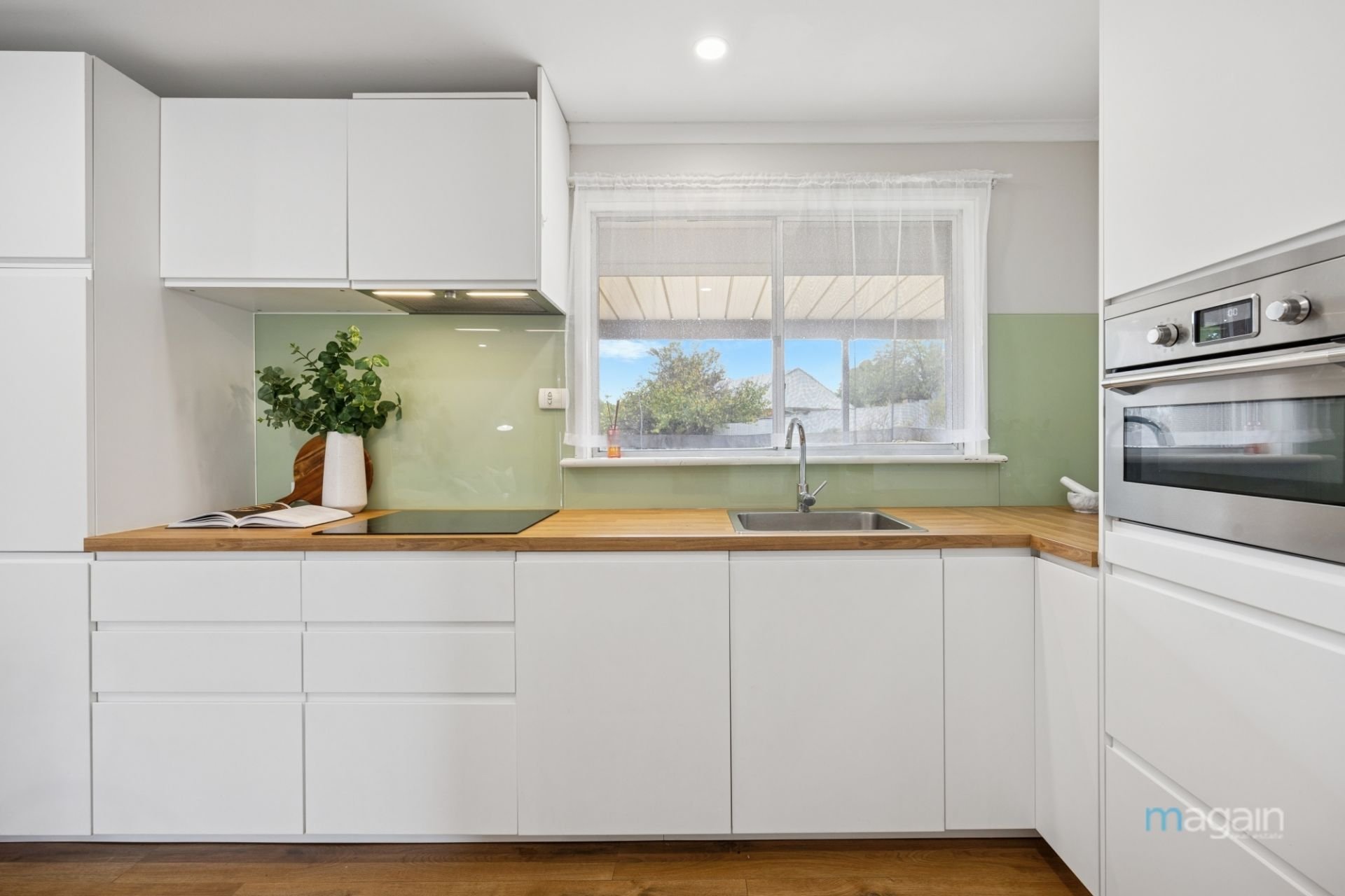 The kitchen has been beautifully updated, including timber benchtops, a glass splash back and cleverly concealed dishwasher. Light floods through all windows in this home, giving a sense of space. The downlights add a nice touch, and the retention of little timber features throughout have really added character and warmth. Laminate flooring throughout the living and high traffic areas is combined with cosy carpet in the bedrooms. The fairly original bathroom is in good condition, and it includes a bath, separate toilet and separate proper laundry.