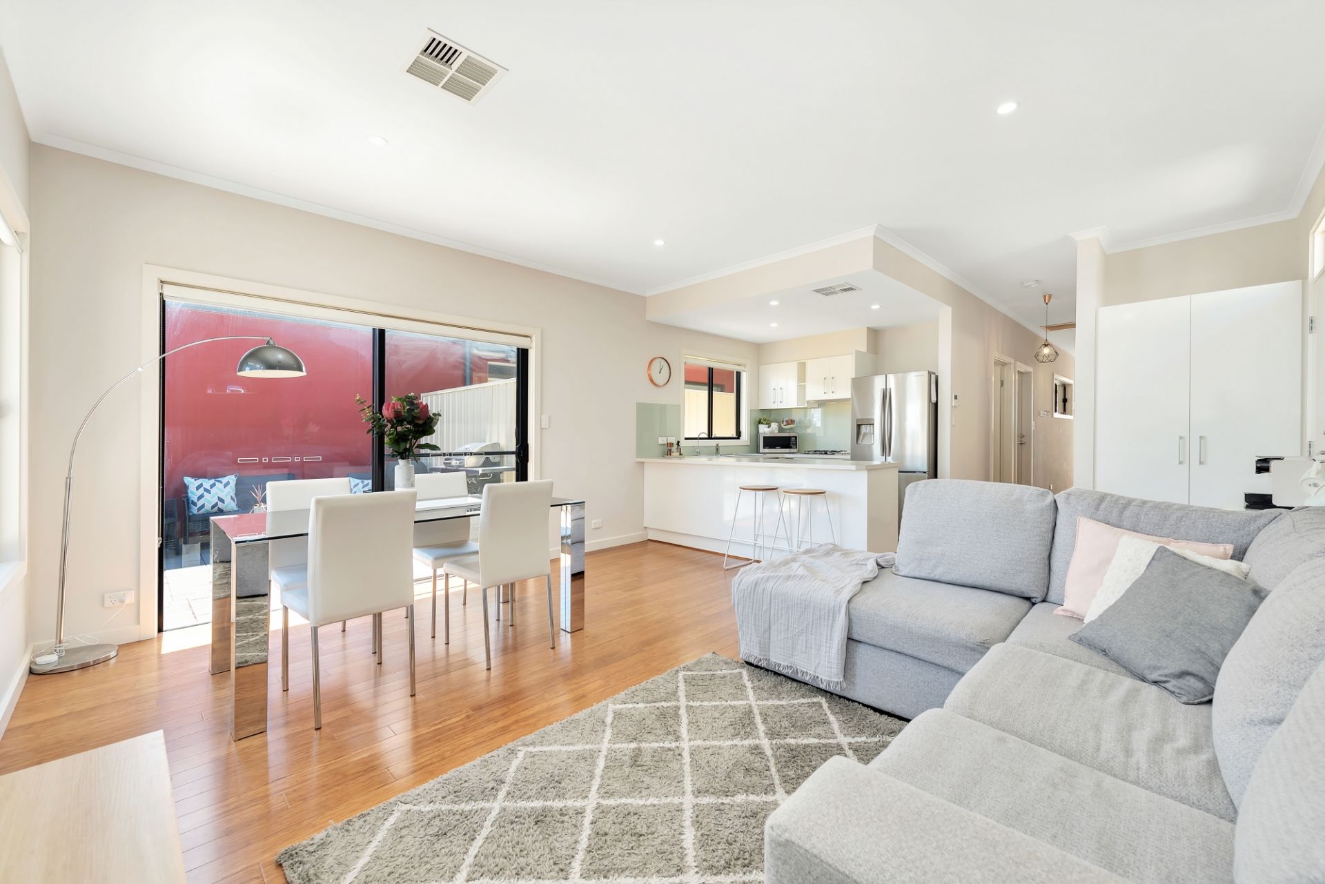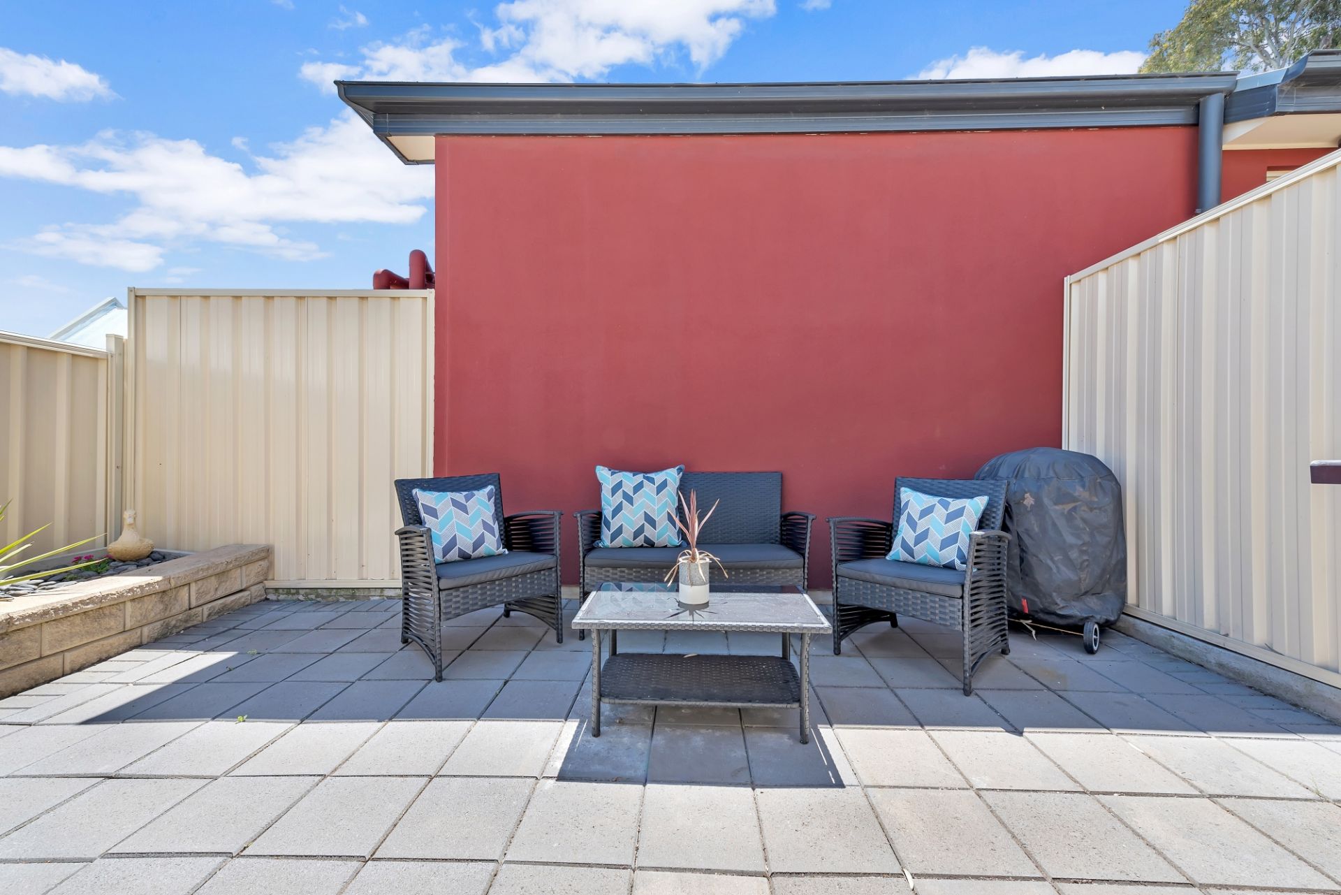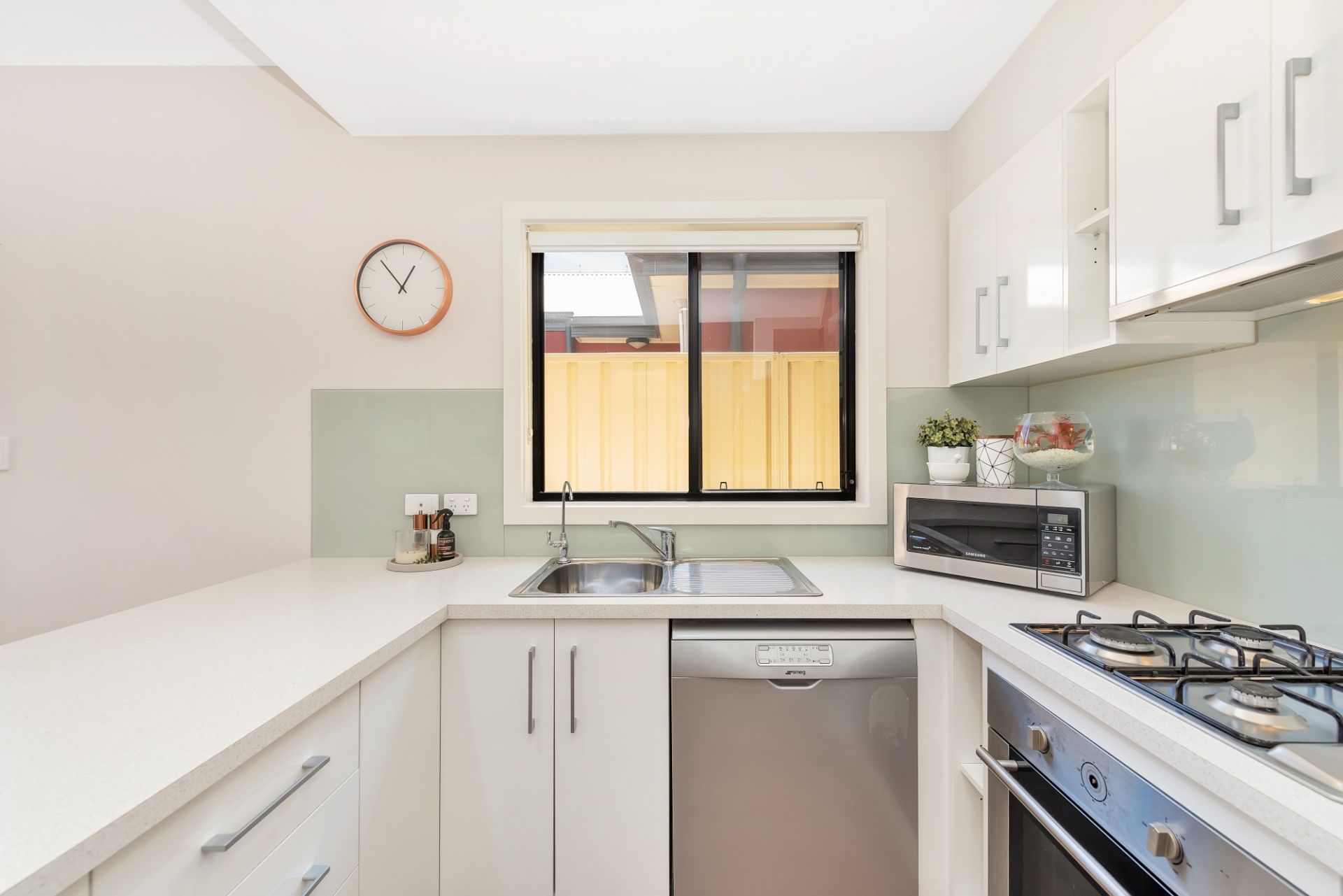 At the heart of the home is the open plan living room. With ample bench space and top of the range stainless steel appliances the chef of the home will look forward to cooking up a storm. This space is also a great place to unwind after a long day. With sliding door access to the outdoor entertaining it makes for a smooth transition from inside to outside entertaining for celebrations with friends and family. You'll find a separate courtyard space for the washing line providing privacy from the entertaining area.