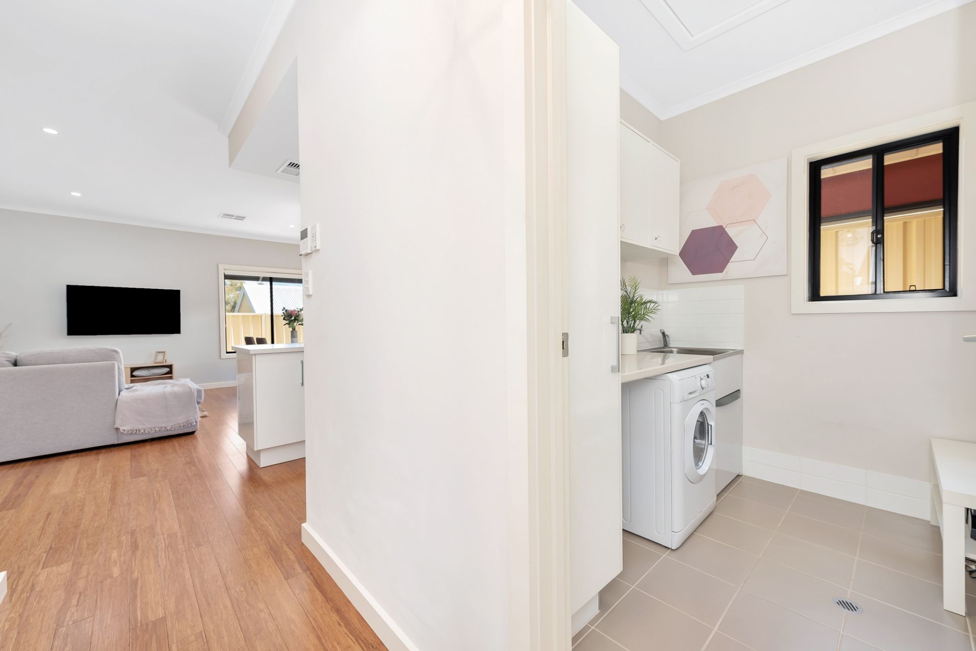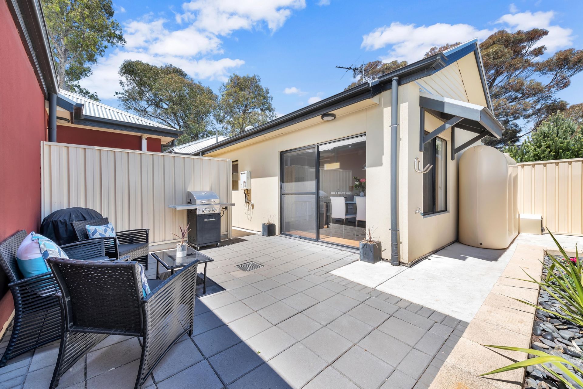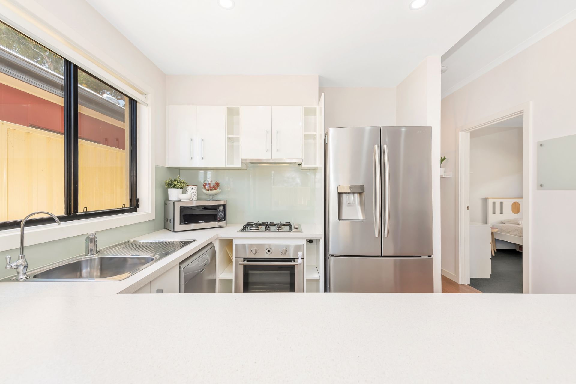 At the heart of the home is the open plan living room. With ample bench space and top of the range stainless steel appliances the chef of the home will look forward to cooking up a storm. This space is also a great place to unwind after a long day. With sliding door access to the outdoor entertaining it makes for a smooth transition from inside to outside entertaining for celebrations with friends and family. You'll find a separate courtyard space for the washing line providing privacy from the entertaining area.