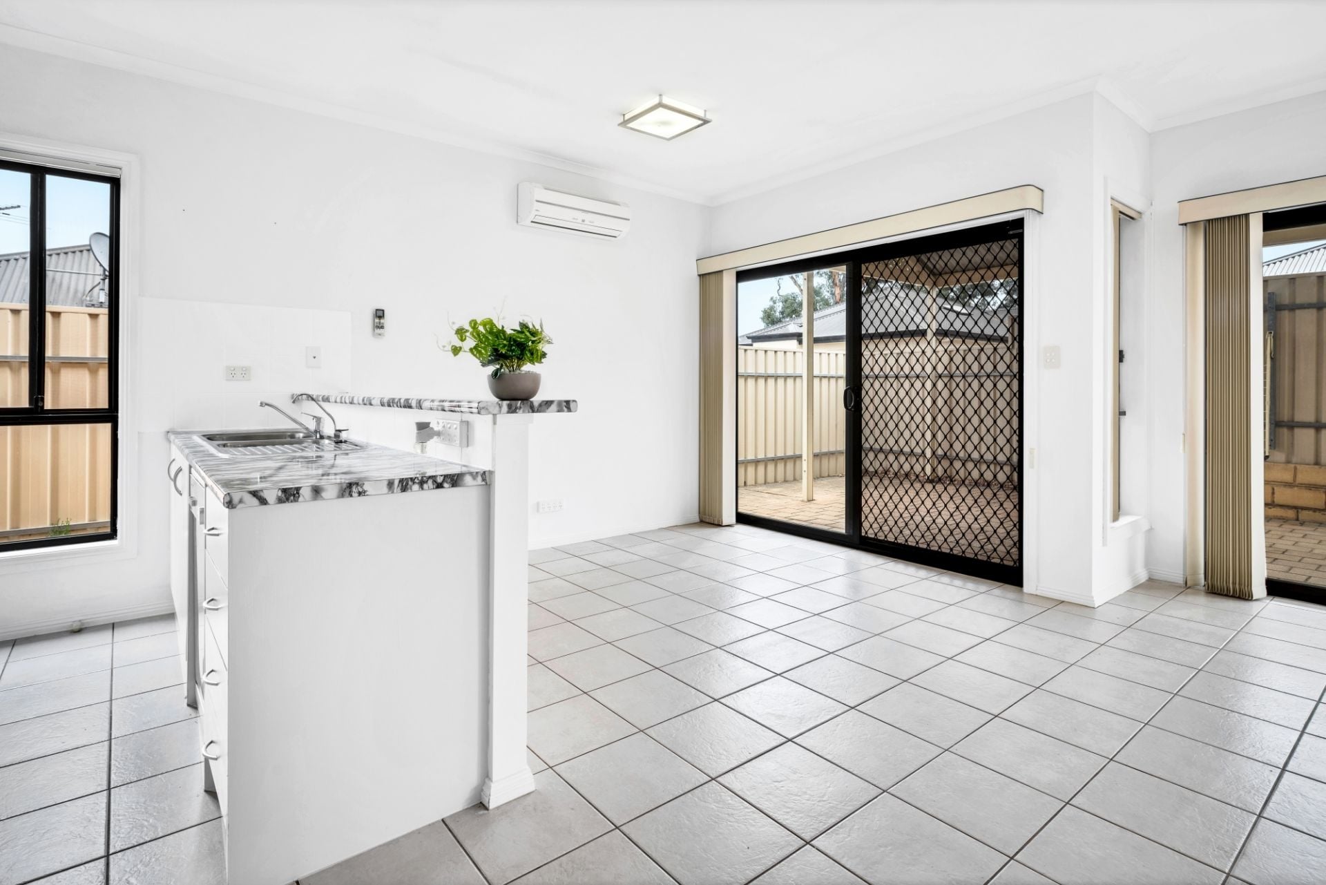 > all year round comfort is sorted thanks to the reverse cycle split system centrally located overlooking the dining and living area and is complemented