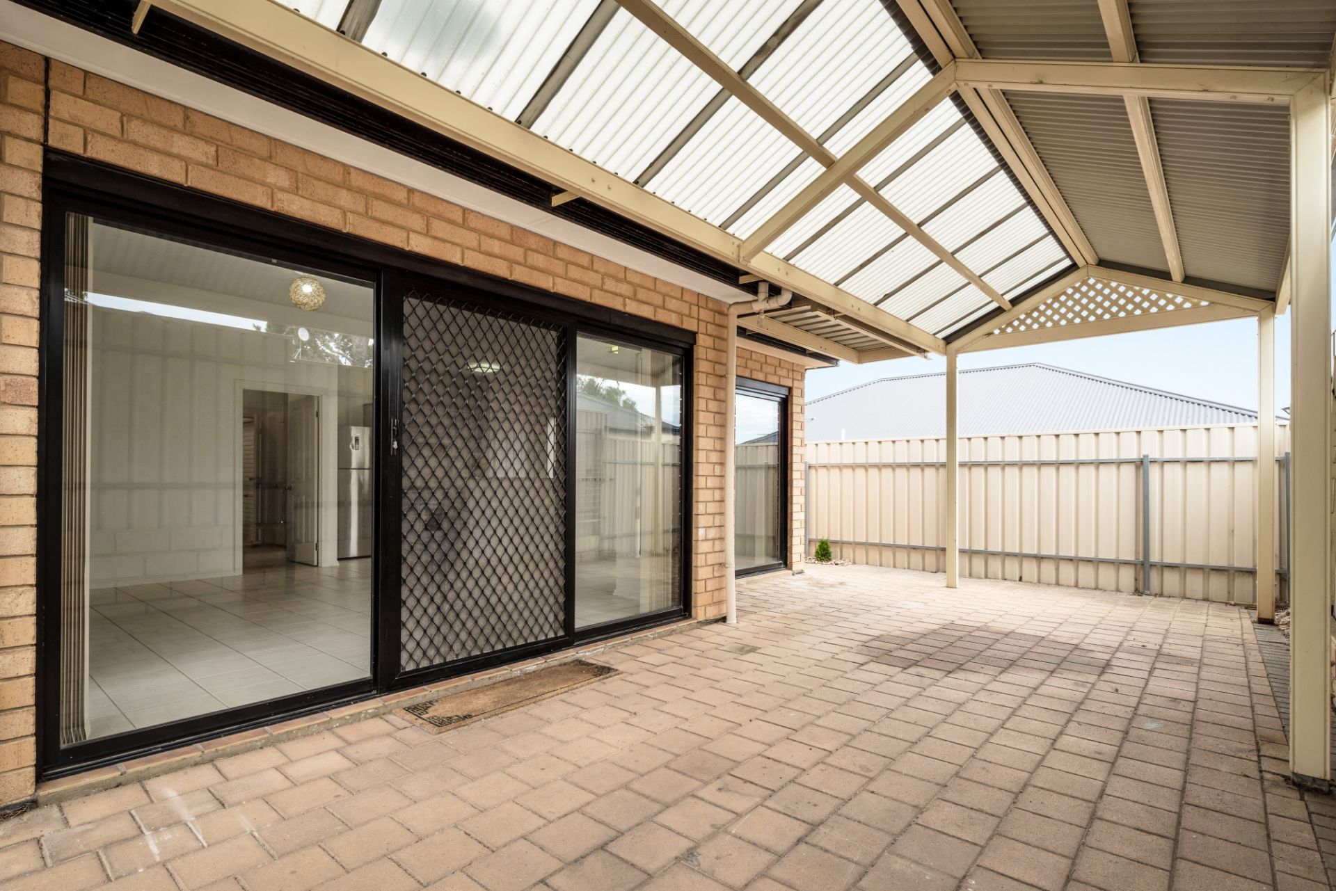 > private courtyard and pitched pergola area for undercover year round entertaining