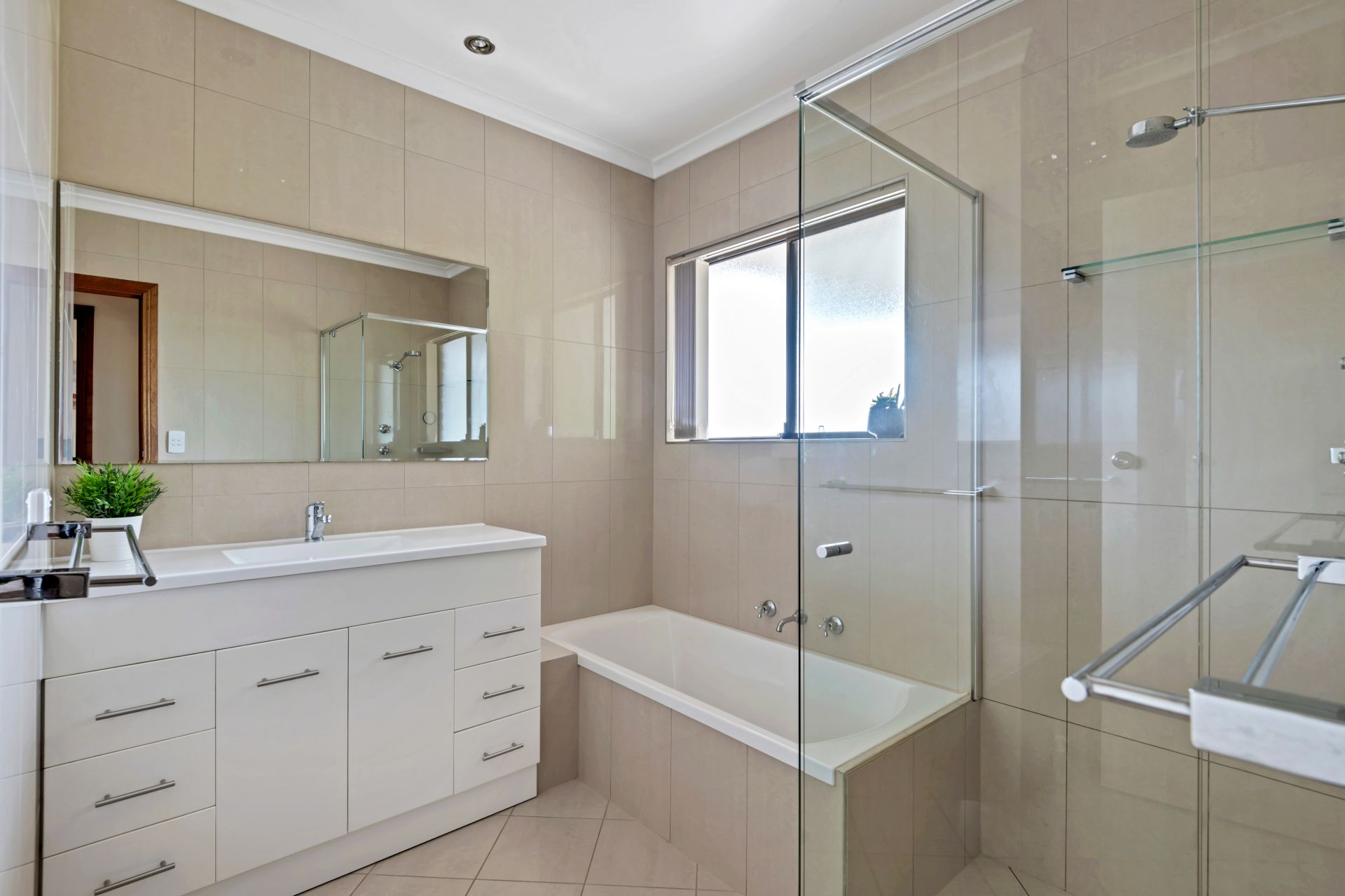 The spacious master bedroom which is serviced by a front-facing window and built-in robe. Bedroom 2 and 3 is also of good size and is equipped with a built-in robes & ceiling fans. All bedrooms are serviced by the homes main modern bathroom which is ultra-classy, tiled to the ceiling, includes a bath, modern vanity and downlights.