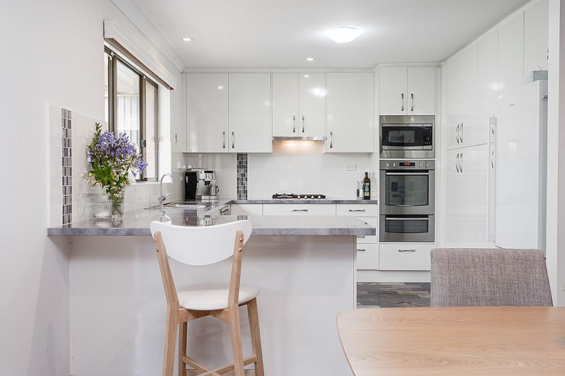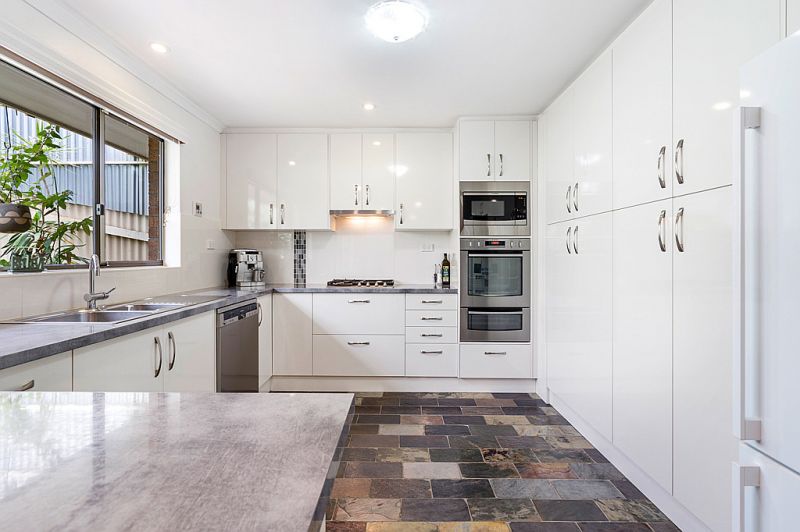 Modern updated kitchen with gas cooking and lots of cupboard space. Slate tiles are throughout the kitchen and dining areas. All bedrooms are a good size, fully carpeted and have built in wardrobes.