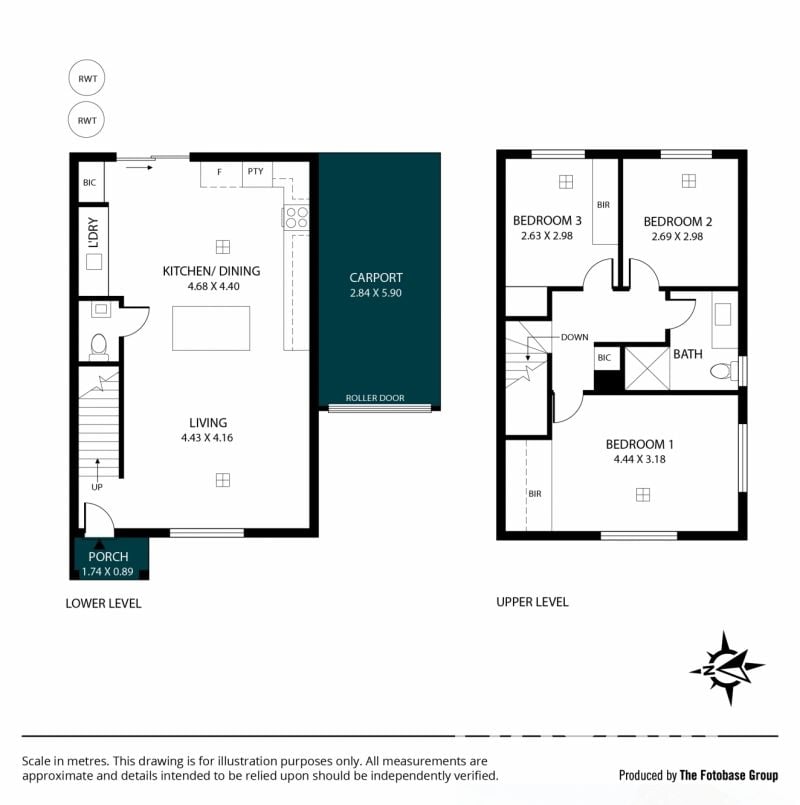 > Three-bedroom town house, first and second rooms with built in robes