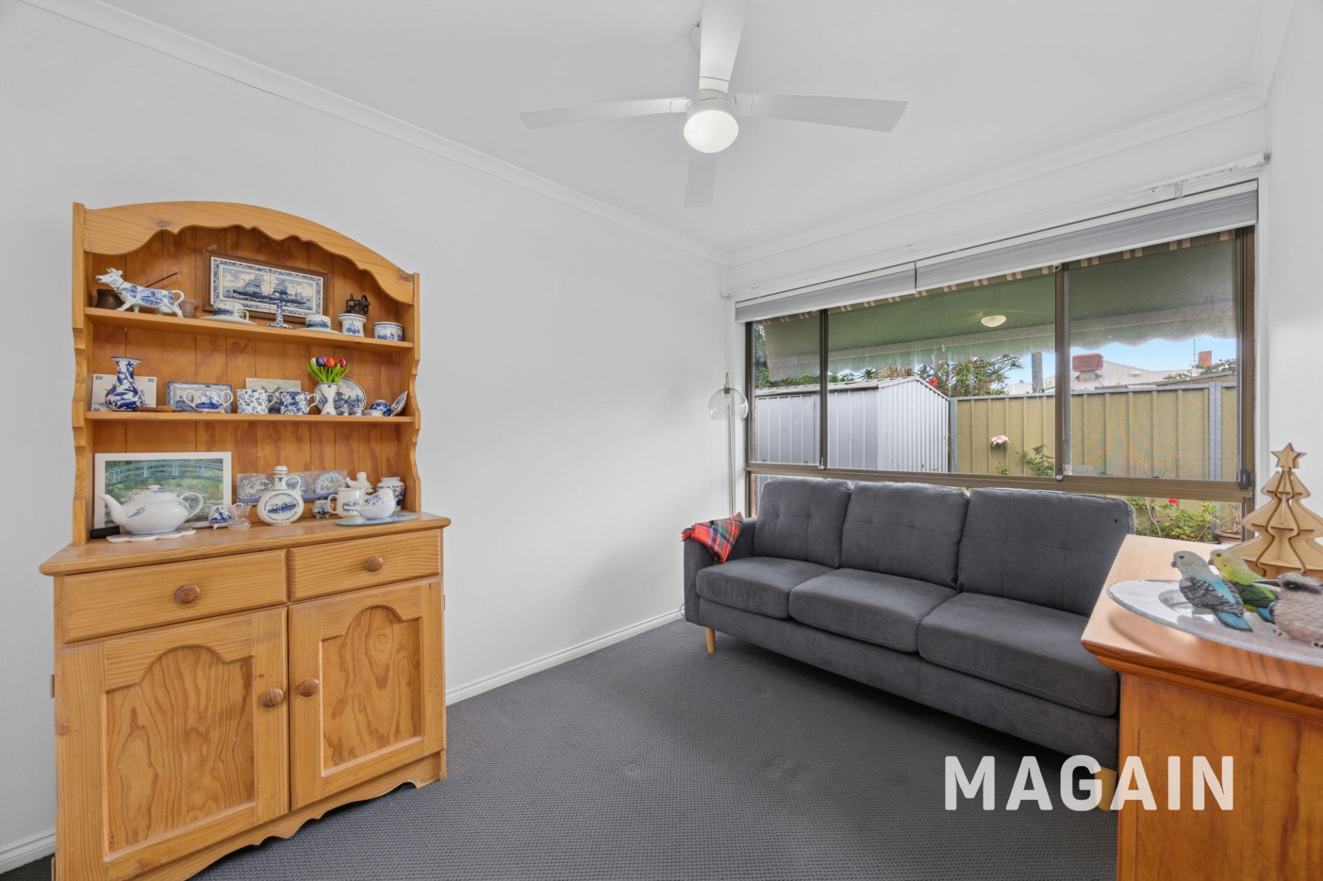 Completing the home are three generous, well-appointed bedrooms, each enhanced by large picture windows, ceiling fans, and soft plush carpeting for added comfort. Bedrooms 1 and 2 include built-in wardrobes to meet your storage needs, while Bedroom 3 offers exceptional versatility, ideal as a study, children's playroom, or second living area to suit your lifestyle.