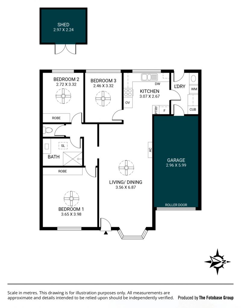 For secure vehicle accommodation, the property includes a single garage with a roller door and direct internal access, offering added convenience and peace of mind.