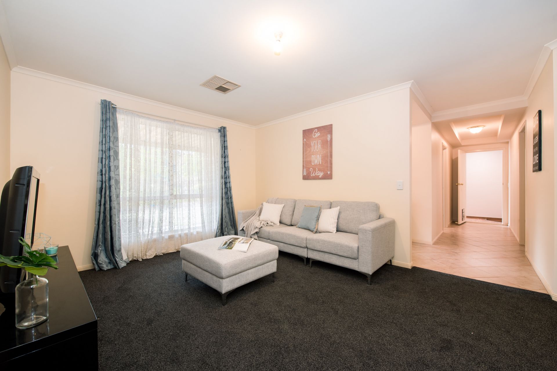 At the heart of the home is a large u-shaped kitchen with ample bench and cupboard space. The chef of the home will love coming home to cook a hearty family meal in this generous space. An open plan meals and lounge area provides an intimate place for the family to spend time together after a long day of school and work. With the added bonus of a separate family and dining area, entertain your family and friends away from the hustle and bustle of the kitchen. Also a great area for the kids to spread out and play so everyone has their own space.
