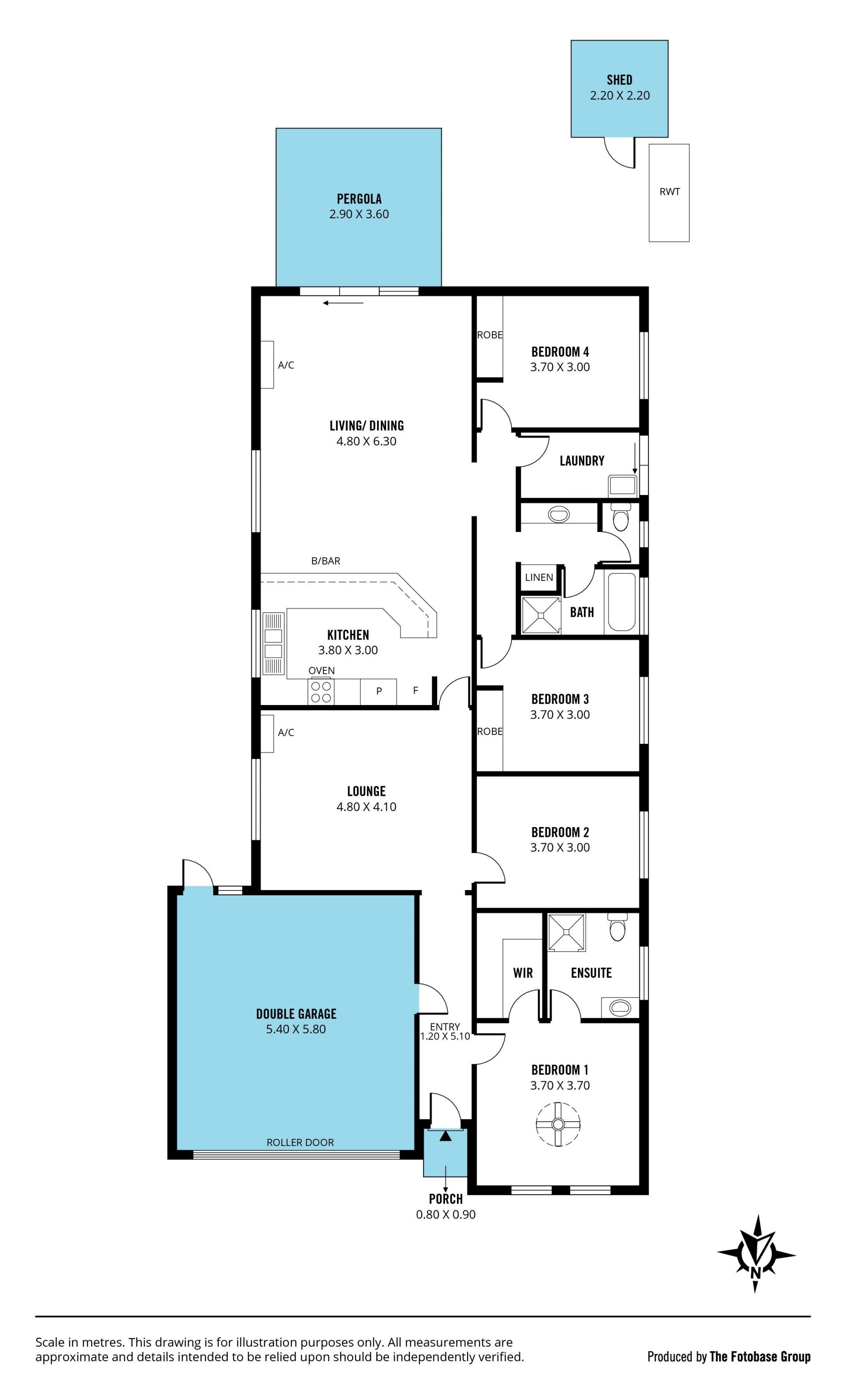 robe and ensuite, plus built-in robes in bedrooms 3 and 4.