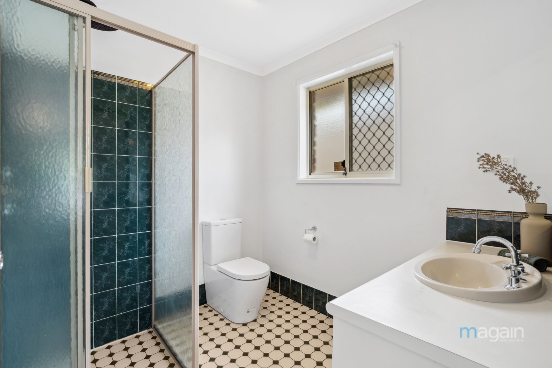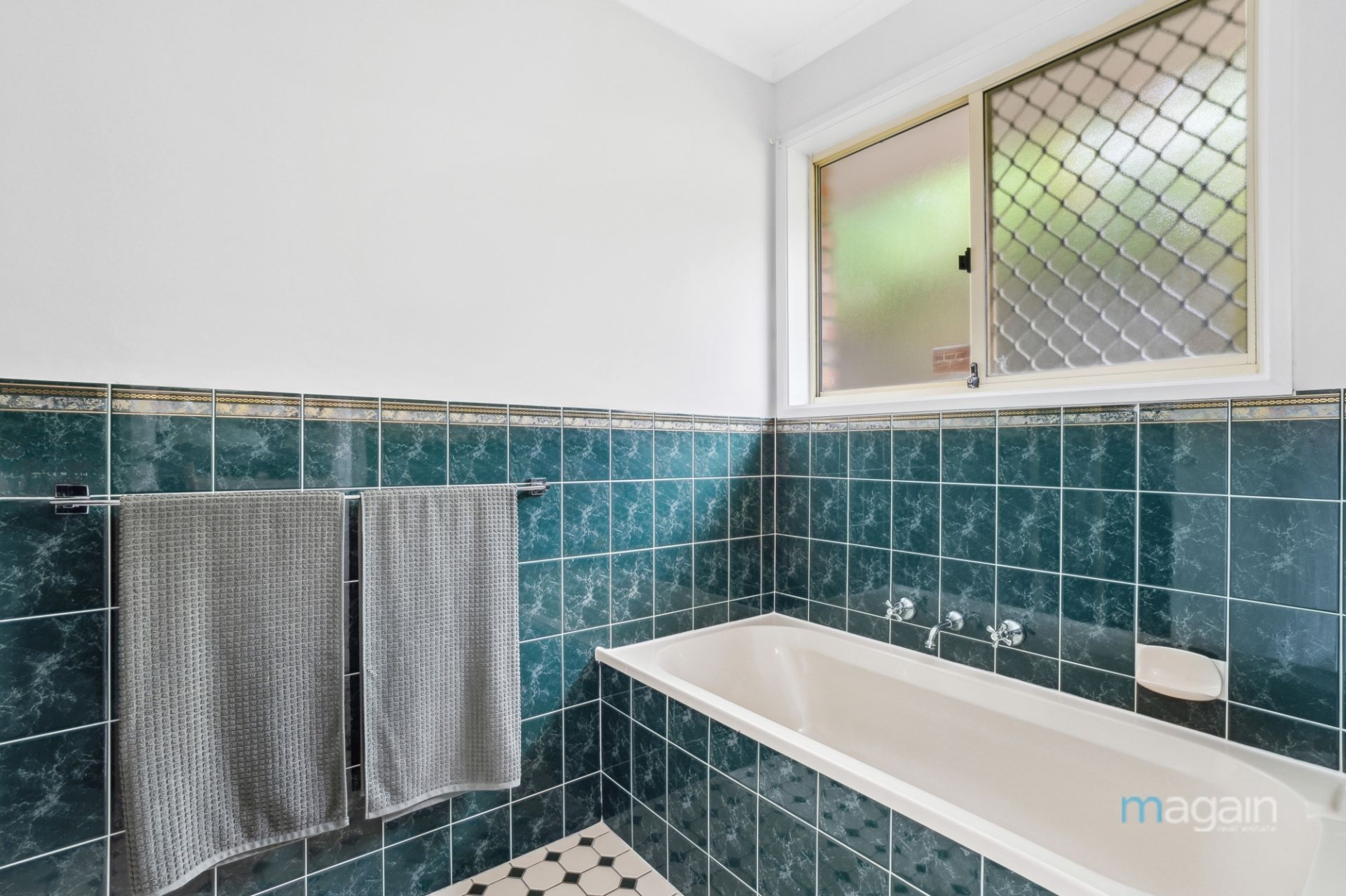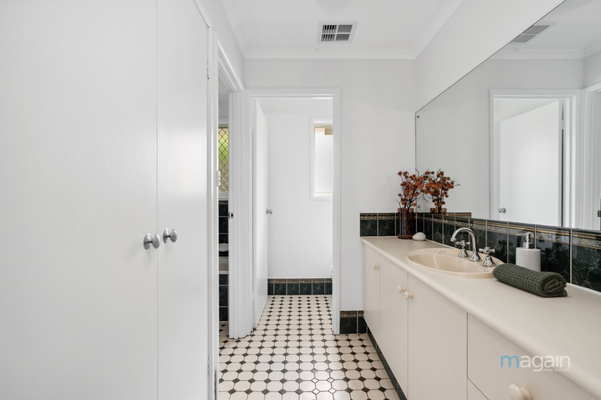 The master bedroom, situated at the front of the home, offers a walk-in robe, a classically designed ensuite, a ceiling fan, and a charming bay window. Bedrooms two, three, and four are located at the rear of the home, with bedrooms two and three boasting built-in robes. All bedrooms have easy access to the three-way main bathroom, with a separate toilet and vanity-perfect for guests. Abundant storage options are available with built-in cupboards in both the bathroom and the adjacent laundry.