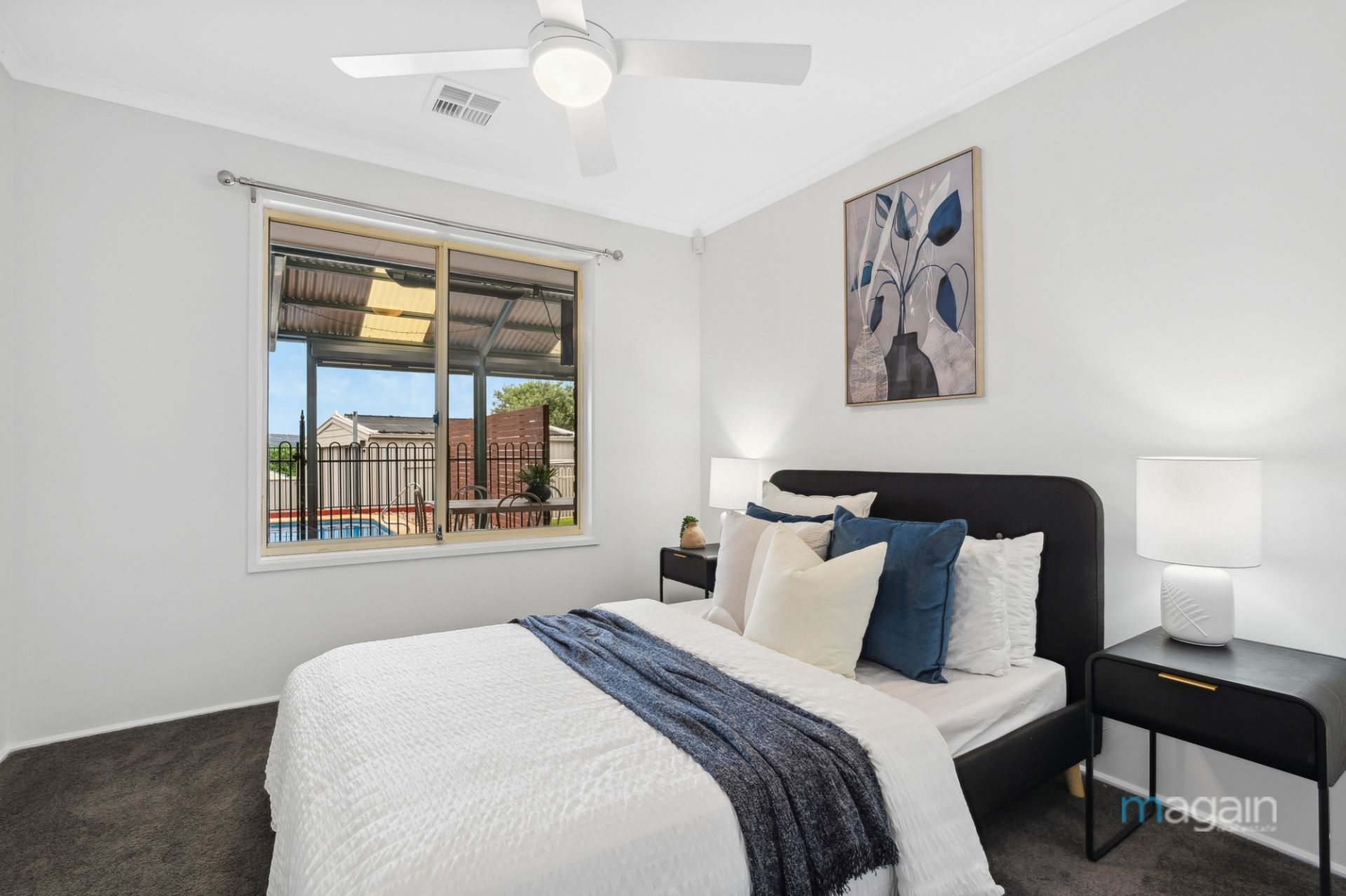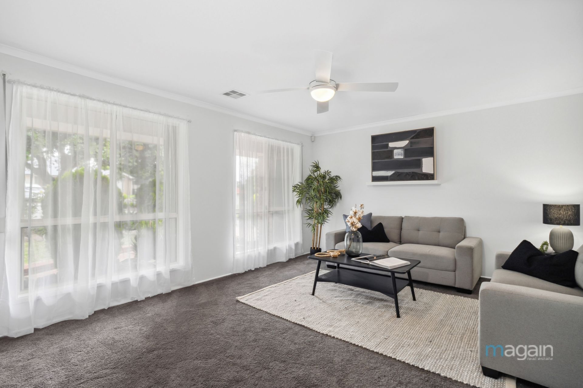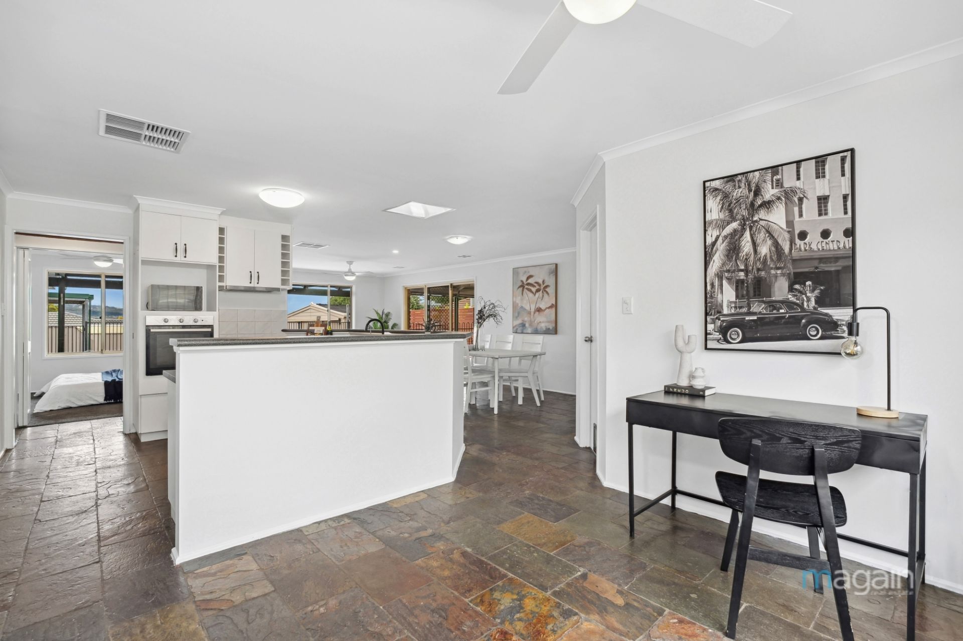 Welcome to this charming family home nestled in the heart of Sheidow Park, boasting irresistible kerbside appeal and ample space for a growing family. Step into a tidy hallway guiding you past the elegant formal lounge with expansive picture windows offering serene views of the front garden. Continue your journey past the home office or fifth bedroom, leading to the heart of the home-an open-plan kitchen, living, and meals area.