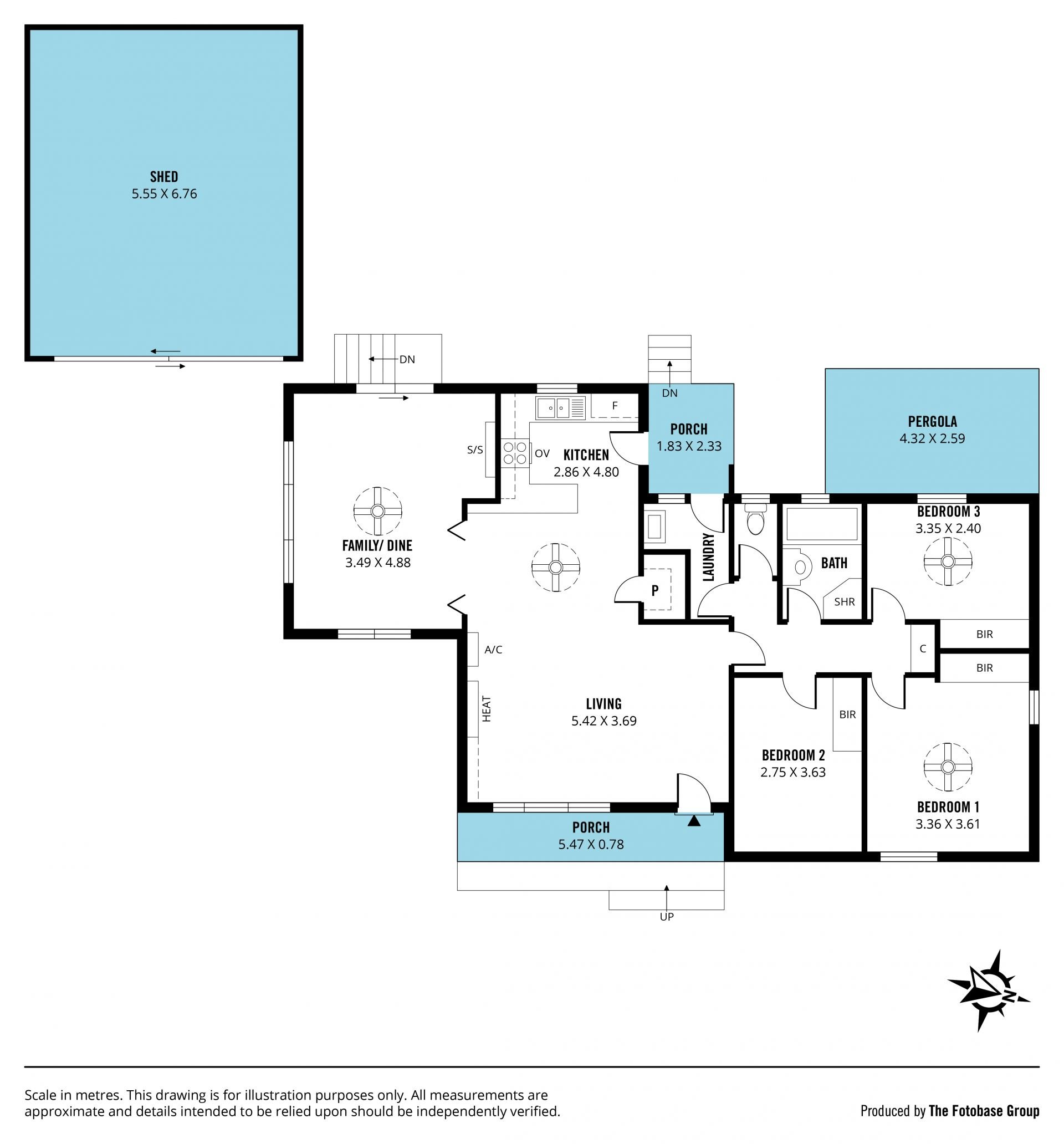 Perfect for entertaining, the family/meals area opens out to a paved entertaining space under a pergola, creating an inviting space to host friends and family throughout the seasons. The secure backyard offers a neat level lawned area, and a substantial shed measuring approximately 5.55m by 6.76m, with convenient drive-through access from the front via secure gates.