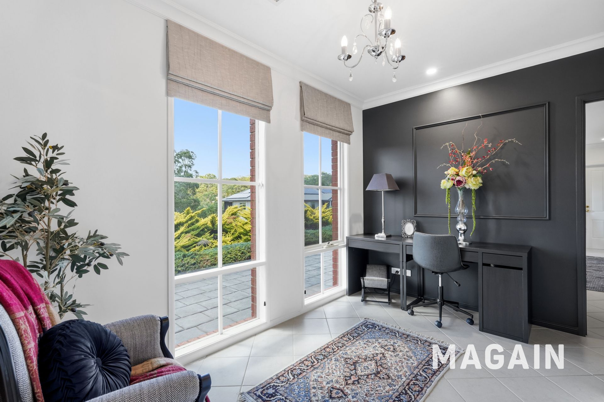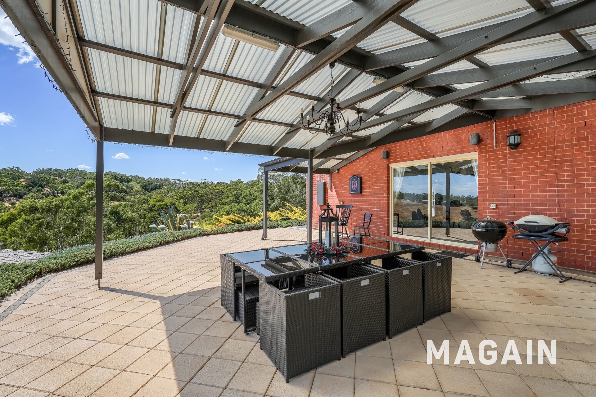 Step outside, and the appeal continues. The front of the home, nestled in a quiet cul-de-sac, is beautifully presented with lush landscaping that enhances its inviting street presence. At the rear, two covered pergolas provide the perfect setting for outdoor entertaining, complemented by breathtaking panoramic views across Chandlers Hill.
