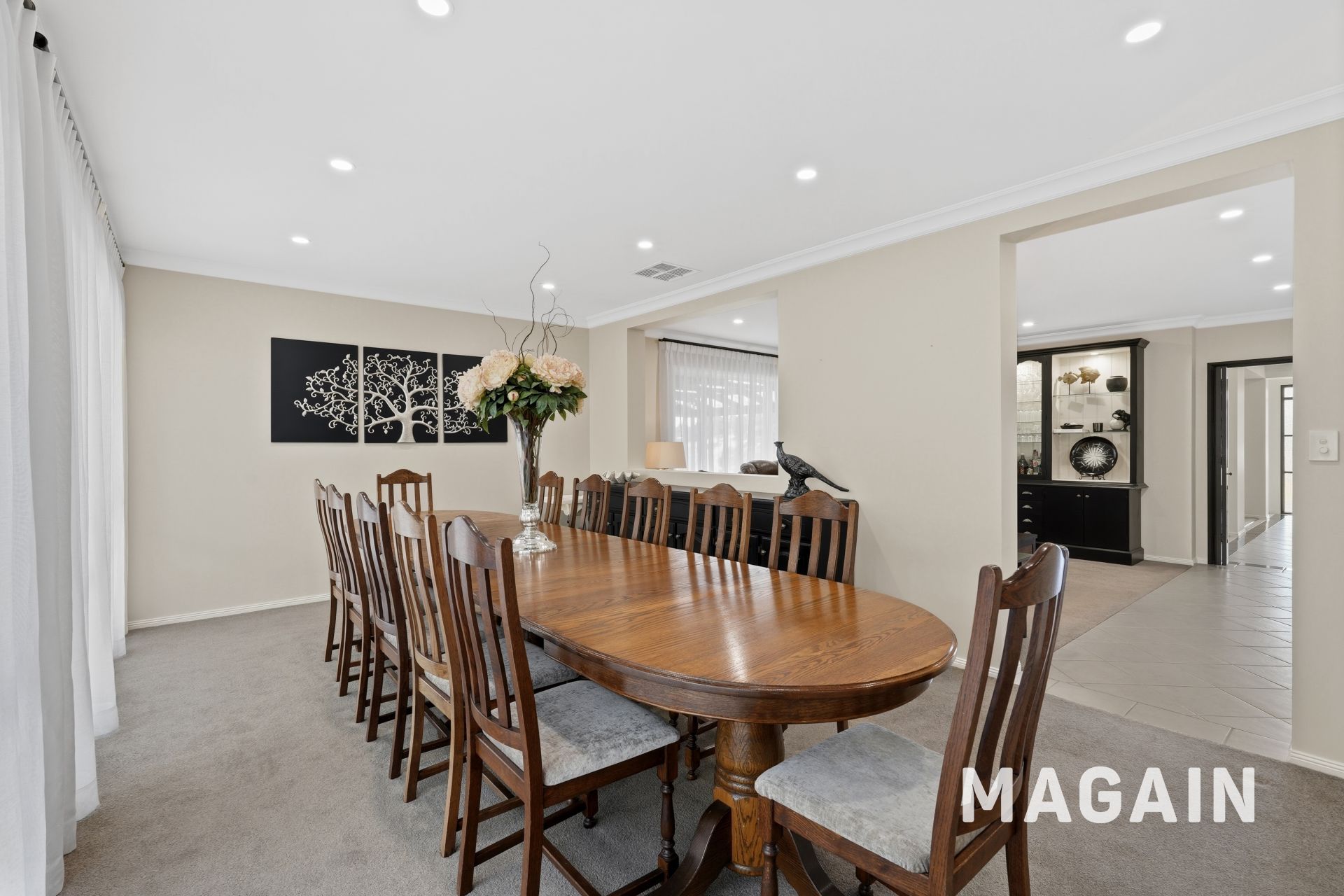 Positioned at the rear of the lower level, a generous formal dining room provides an ideal setting for hosting memorable dinner parties and special gatherings.