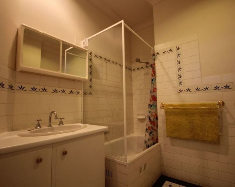 • Bathroom features a shower over the bath.