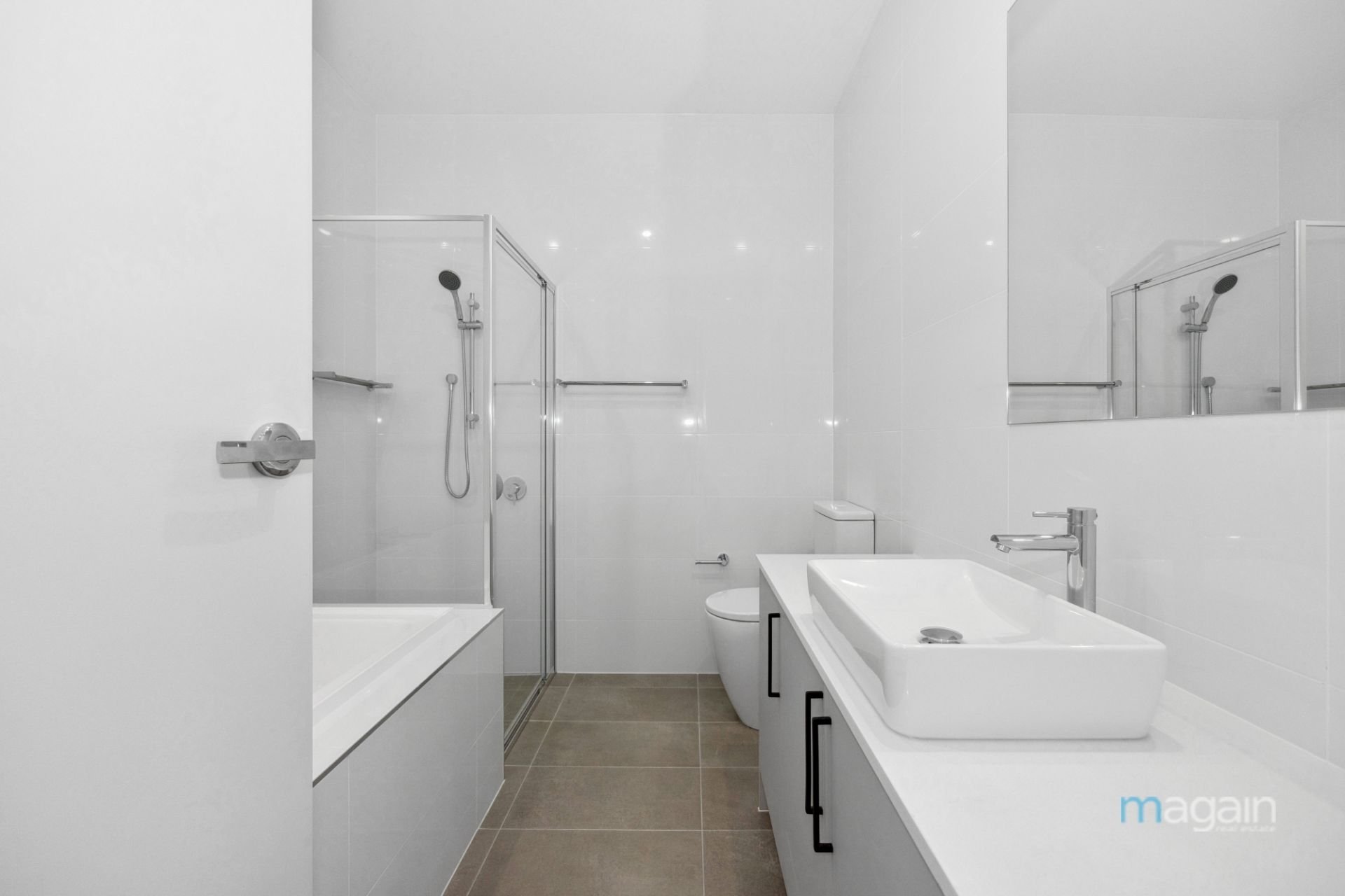 The property includes a total of three modern bathrooms with two upstairs bathrooms and toilet/laundry downstairs, ensuring comfort and convenience for everyone.