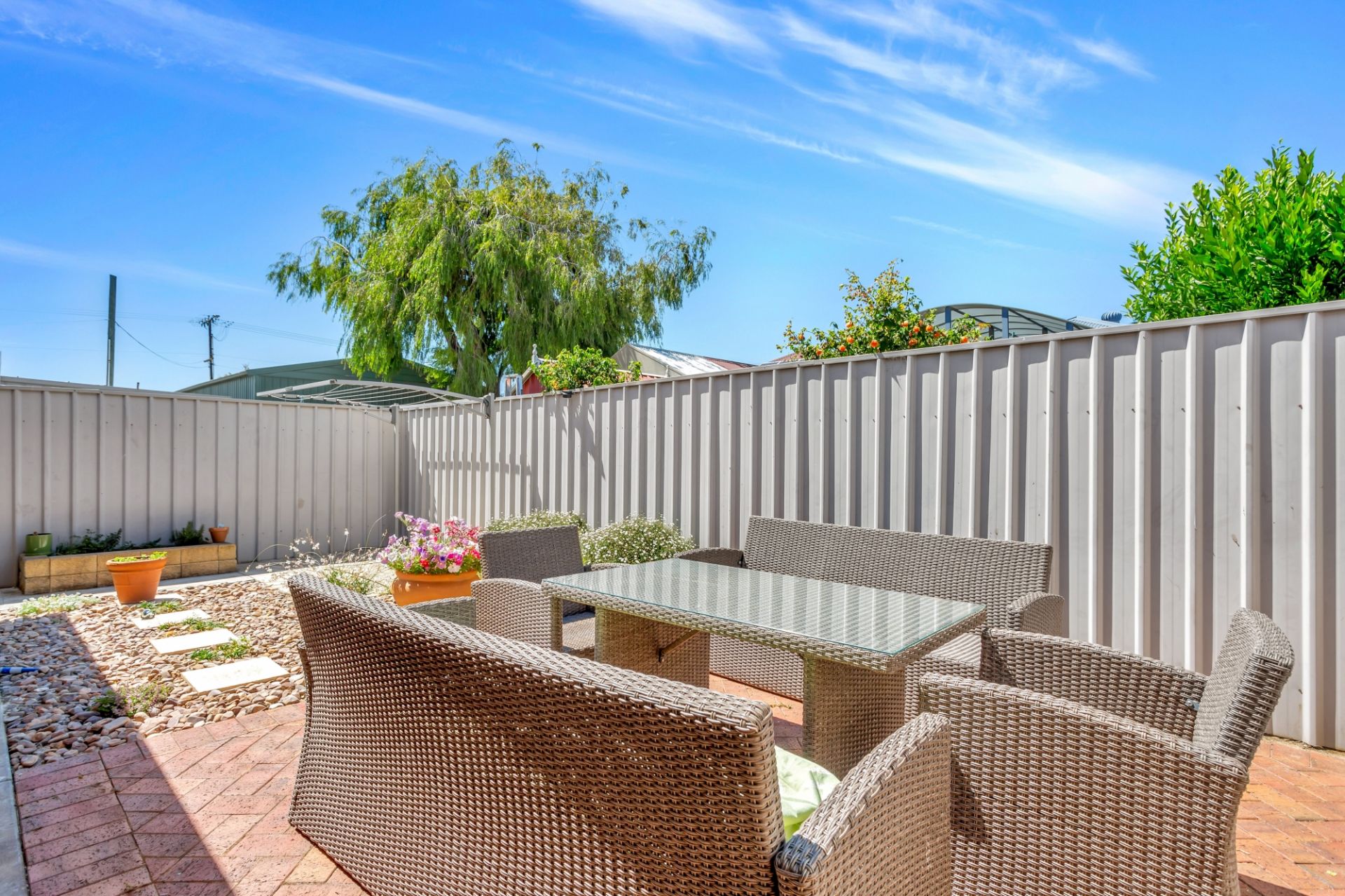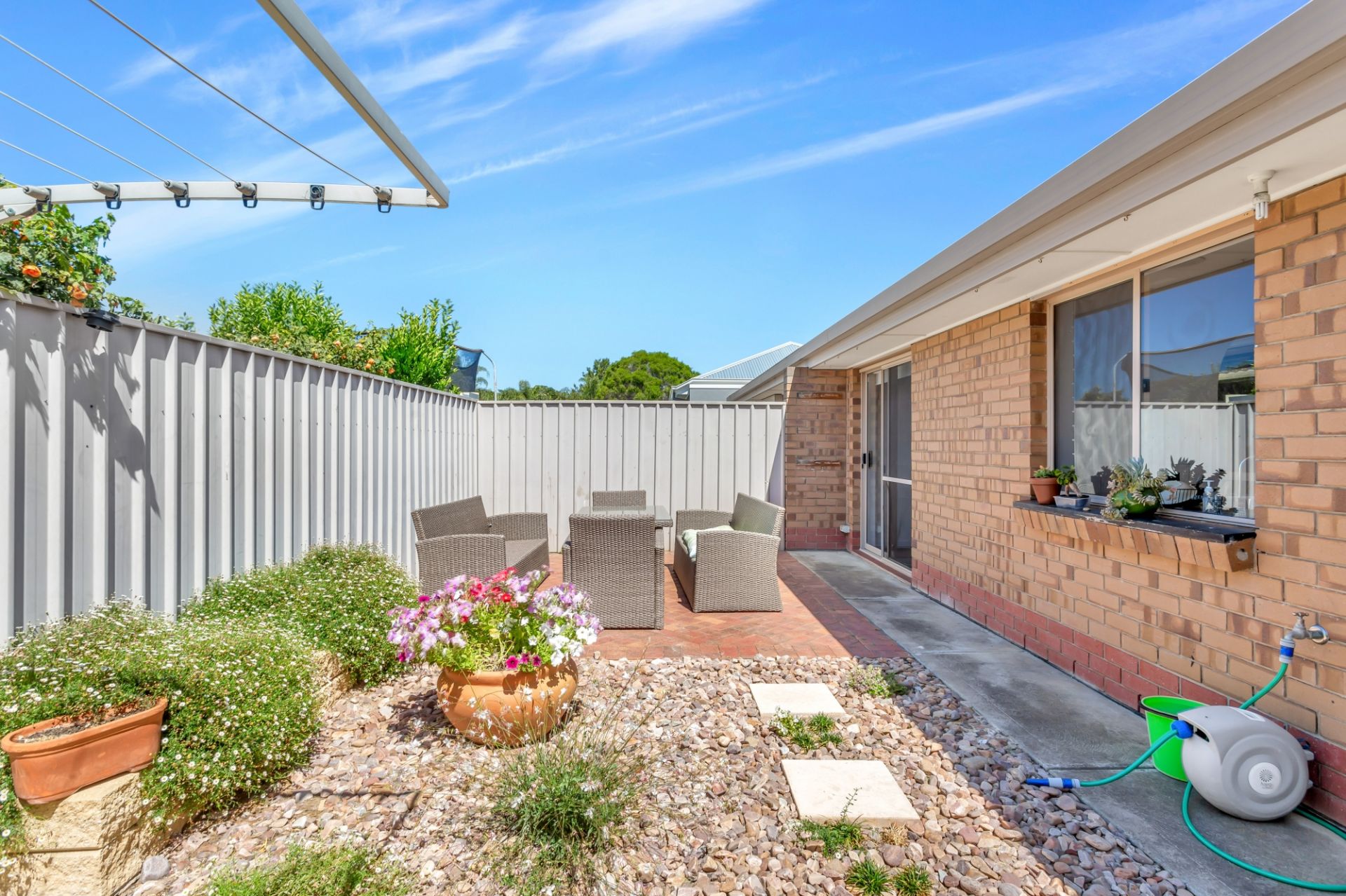 > carport parking for 1 and low maintenance yard