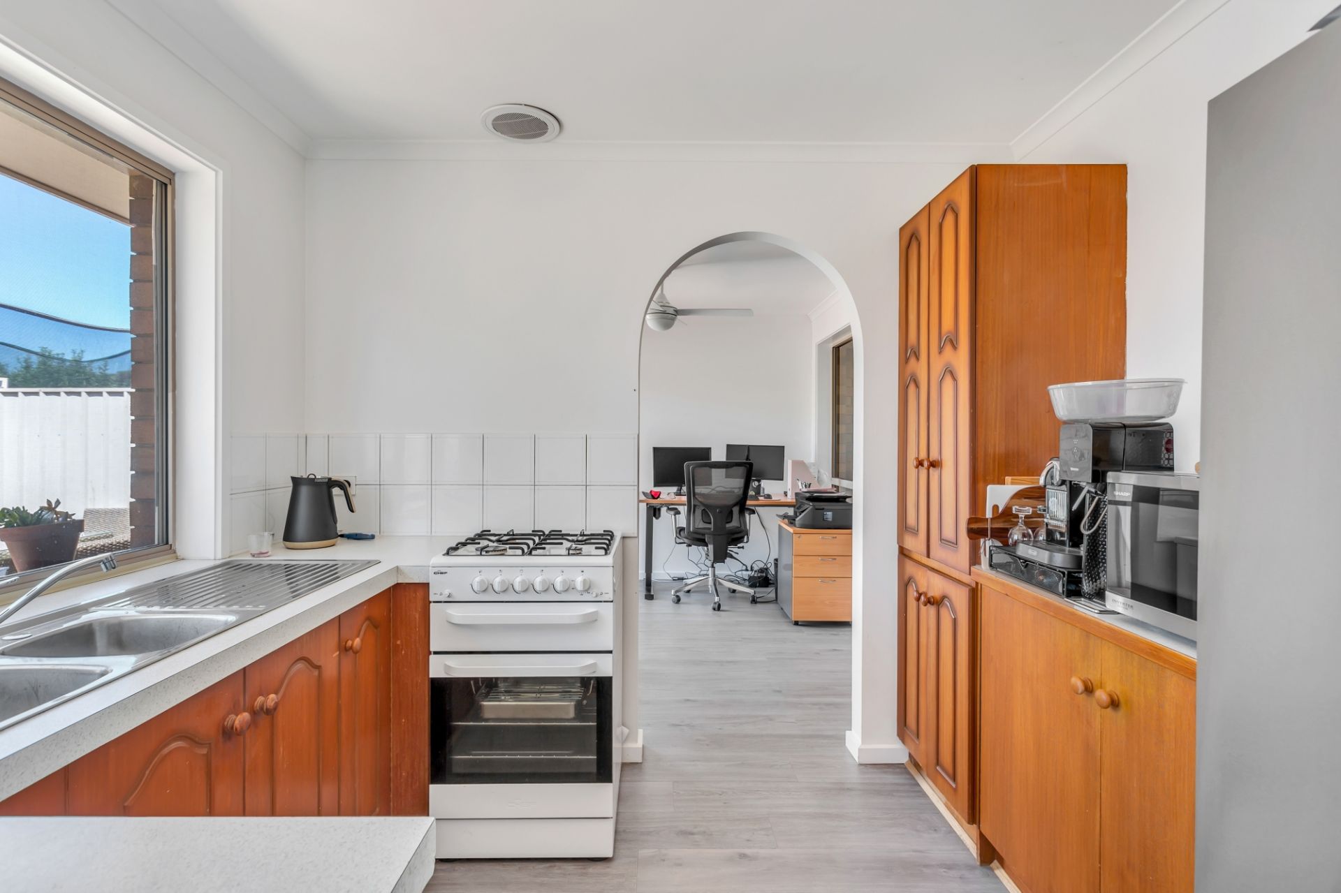 > neat kitchen with gas cooking and ample storage