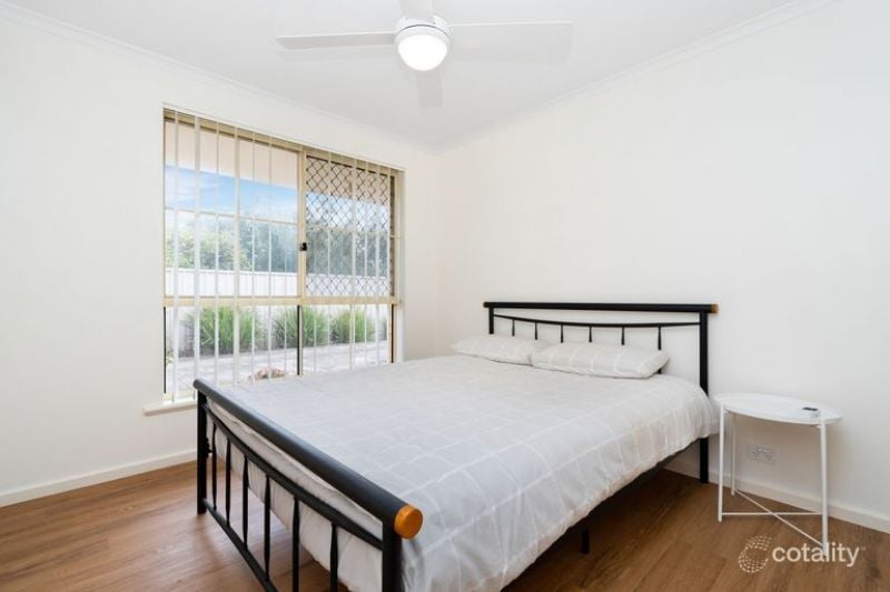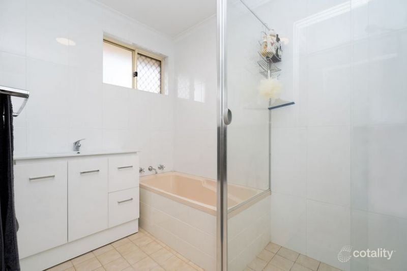 Both bedrooms are well sized and include built in robes, while the main bedroom is further enhanced with a ceiling fan. The central bathroom is practical in design, featuring both a bath and shower, along with a separate toilet for added convenience.
