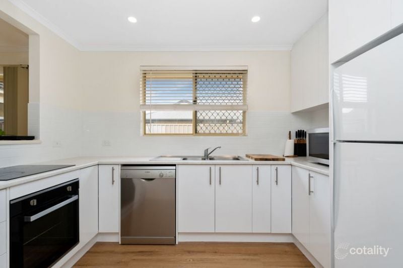 Inside, the home features a comfortable open plan living and dining area, complete with floating floors and split system air conditioning for year round comfort. The kitchen is both functional and well equipped, offering a dishwasher, induction cooktop and a handy servery that connects seamlessly to the living zone.