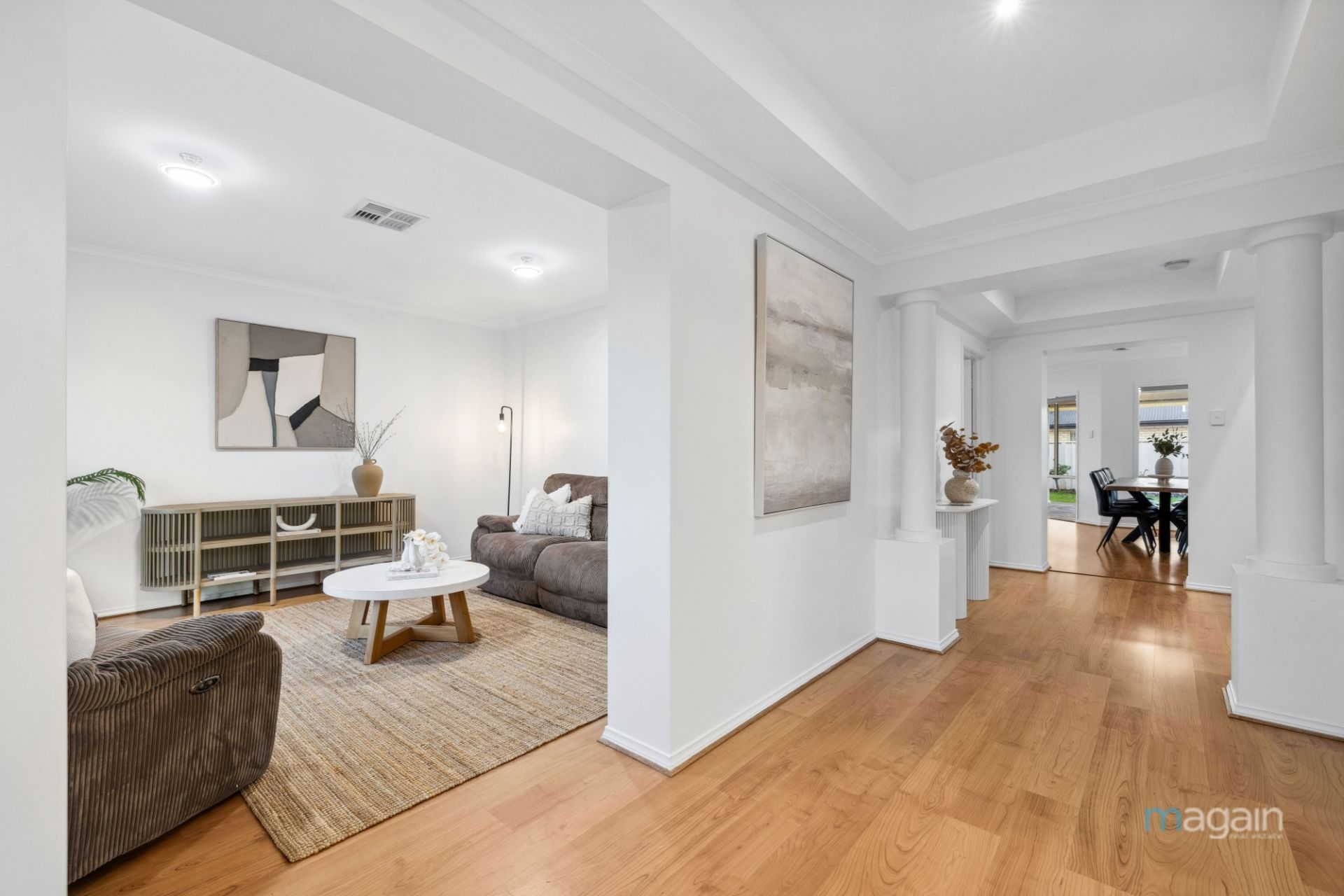 Welcome to 23 Bluepoint Way, Aldinga Beach, a beautifully designed two-storey home offering an exceptional blend of space, versatility, and comfort. Perfectly suited for growing families or those who love to entertain, this well-appointed home is set in a family-friendly street close to the beach and local amenities.