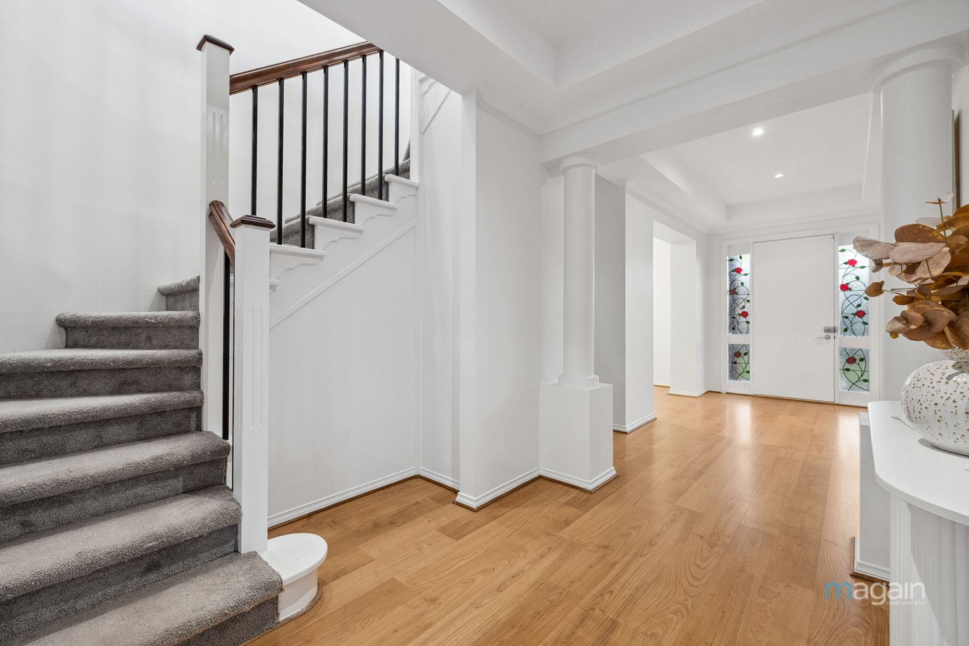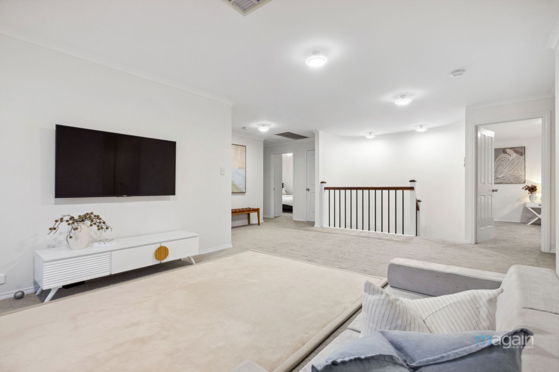 Upstairs, you'll find a spacious second living room, an ideal retreat for kids, teenagers, or quiet relaxation, as well as four generously sized bedrooms, each fitted with built-in robes. The main bedroom serves as a private sanctuary, complete with a walk-in robe and private ensuite. The main bathroom is equally impressive, featuring a luxurious spa bath, double vanity, and a separate toilet to ensure convenience for busy families.