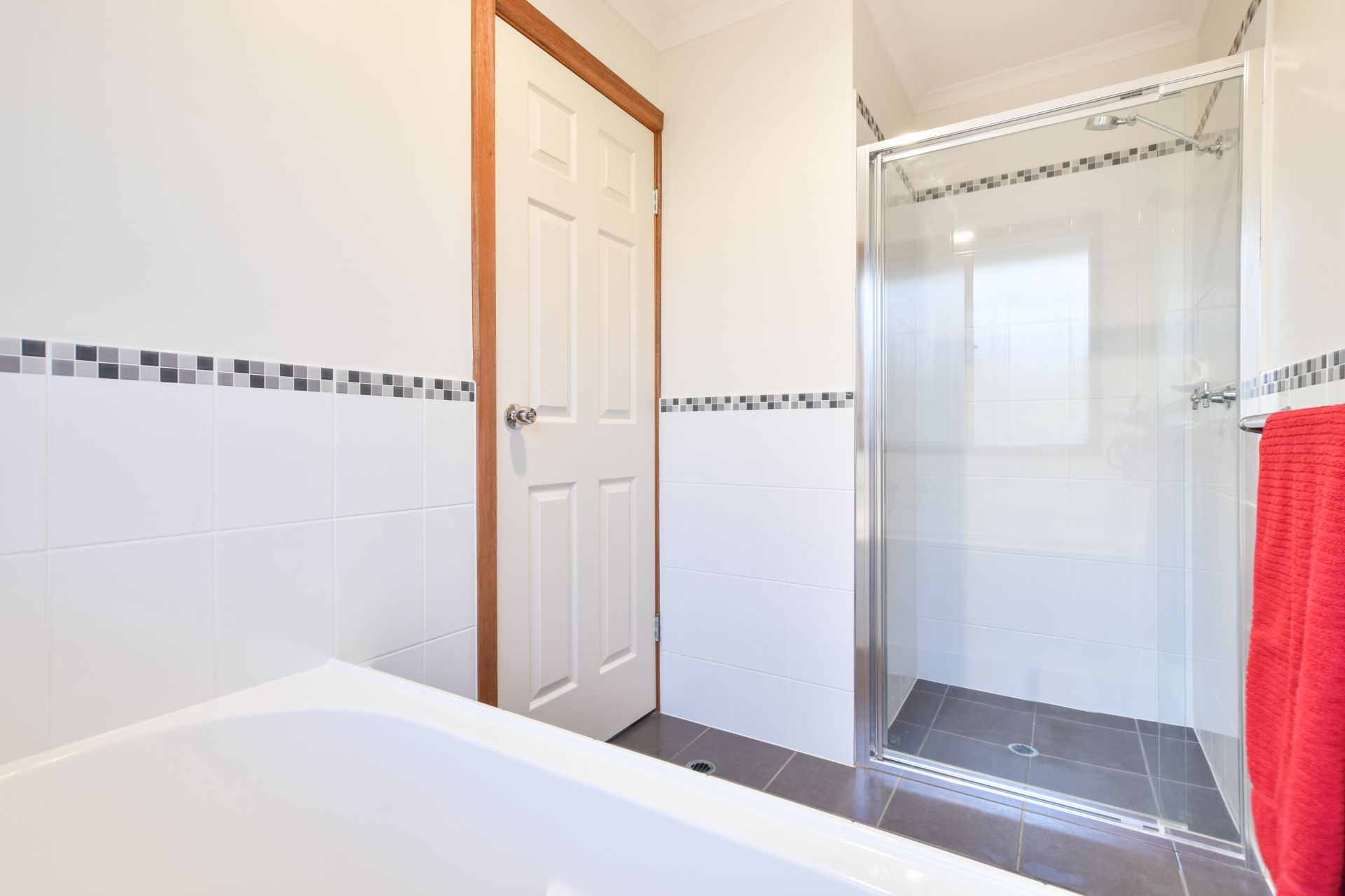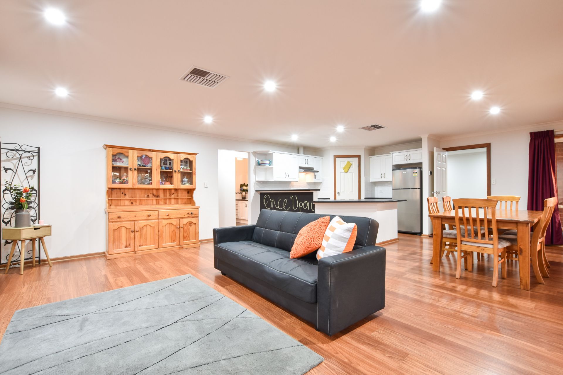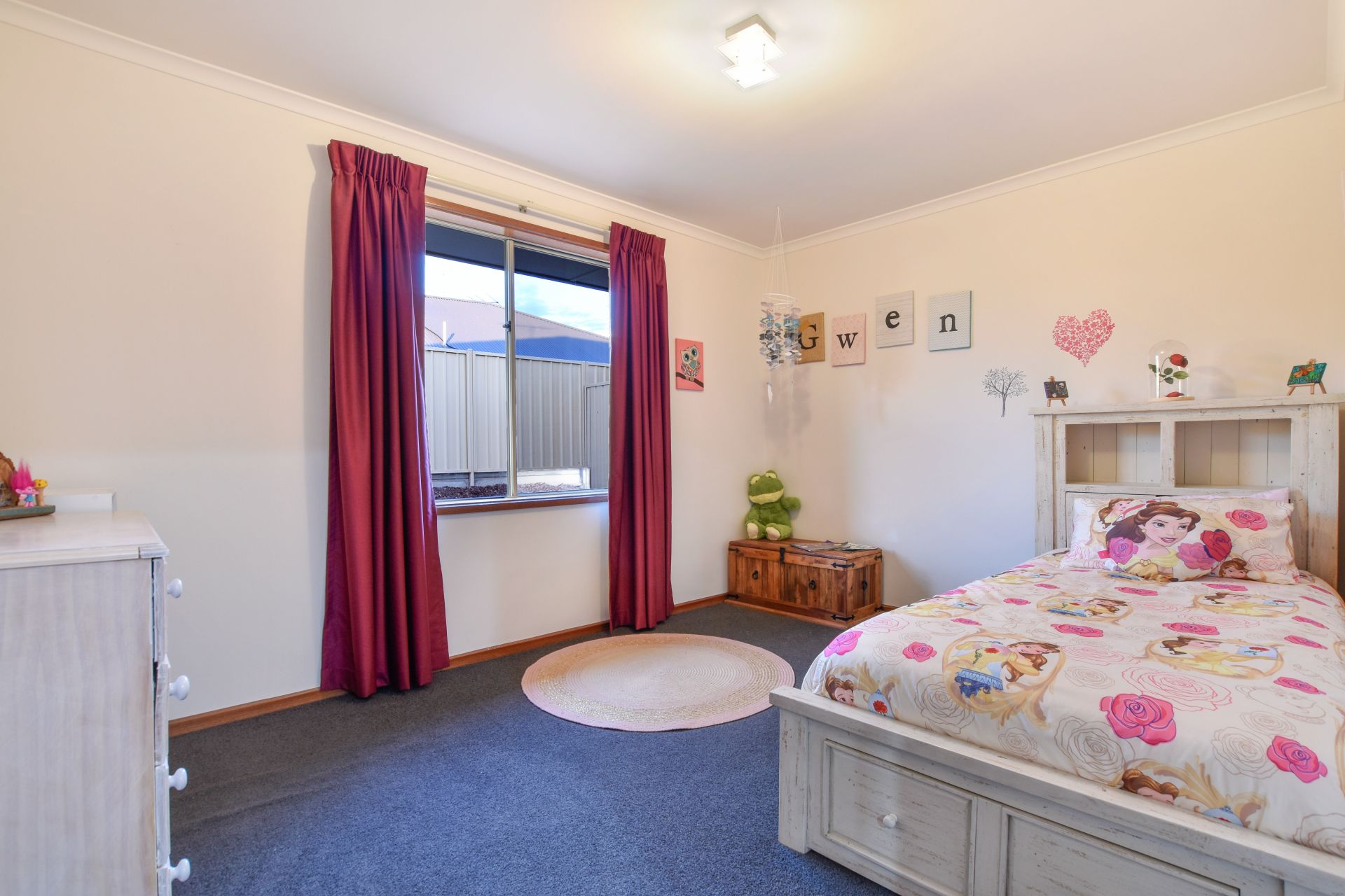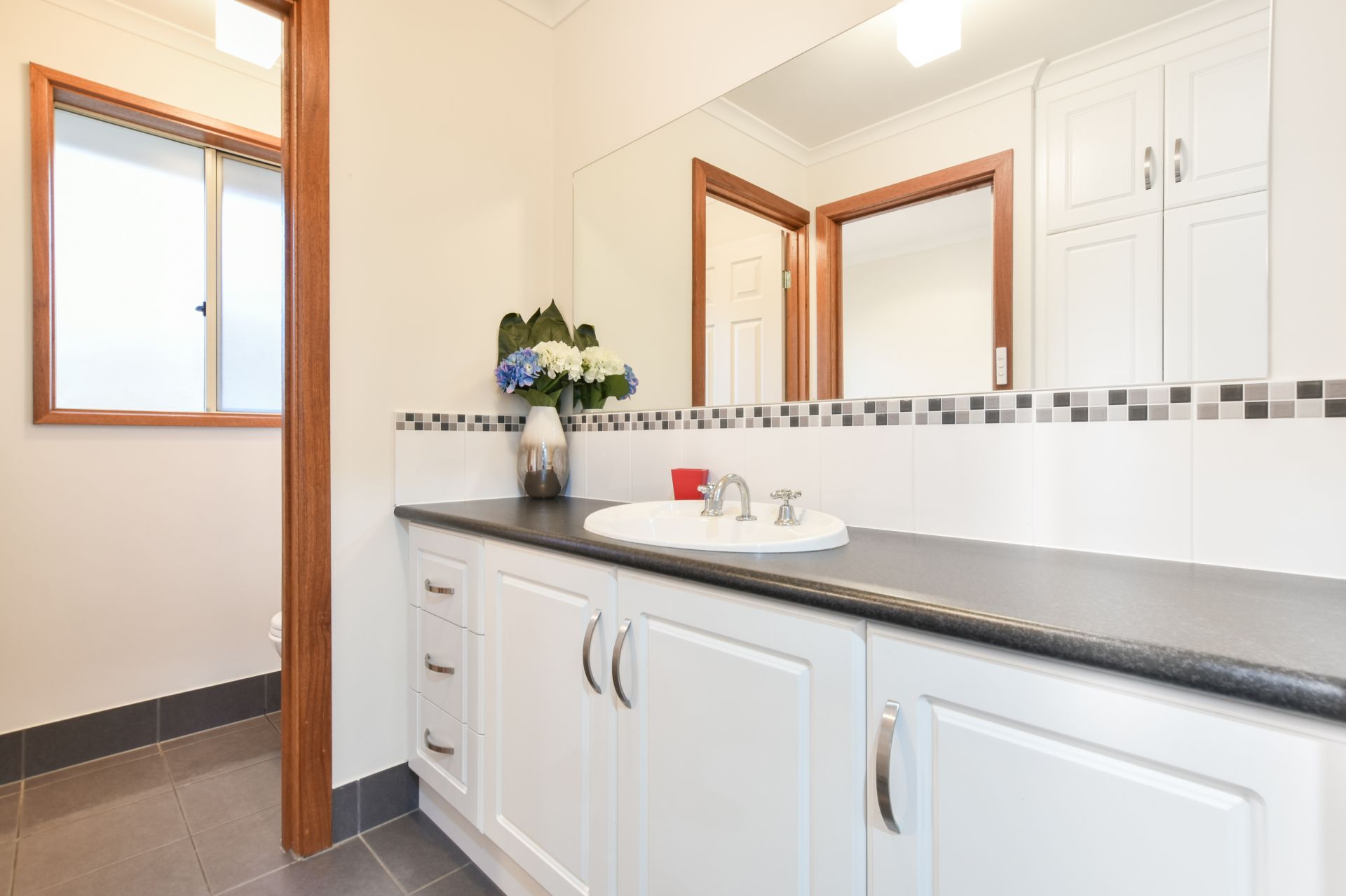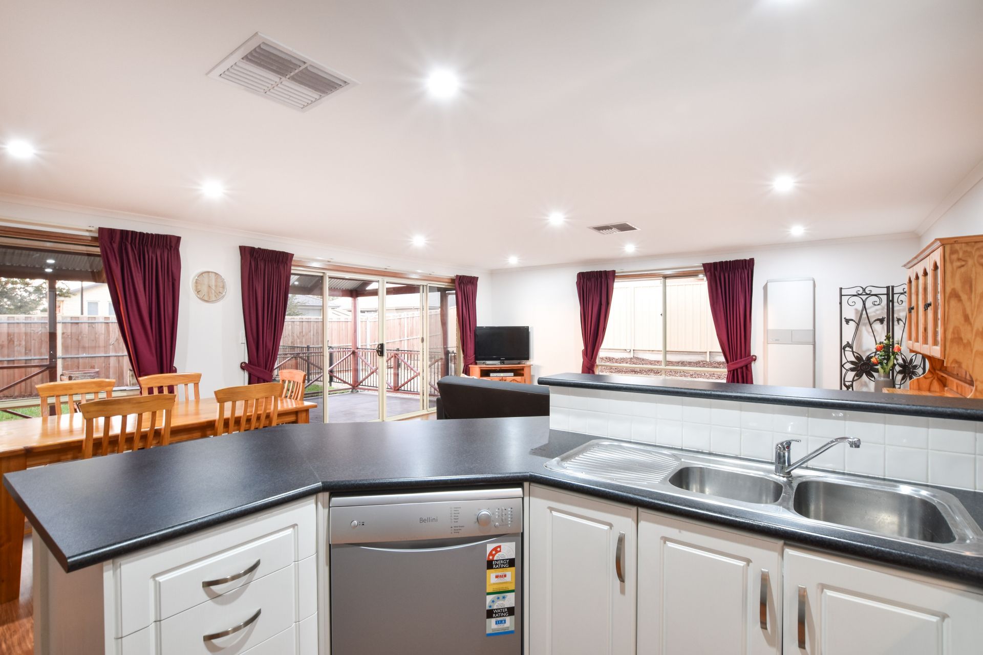 The heart of the home, the kitchen, will make the chef of the family smile from ear to ear. With an abundance of bench-space, all the necessary stainless steel appliances, including dishwasher and gas cooktop and large walk in pantry, there is nothing left wanting. The kitchen overlooks the open planned dining and family room, and also the ability to watch the kids playing outside. Bedrooms 2 & 3 are both of generous size, and are serviced by the three way bathroom well. For year round comfort, evaporative cooling and gas heating have been installed.