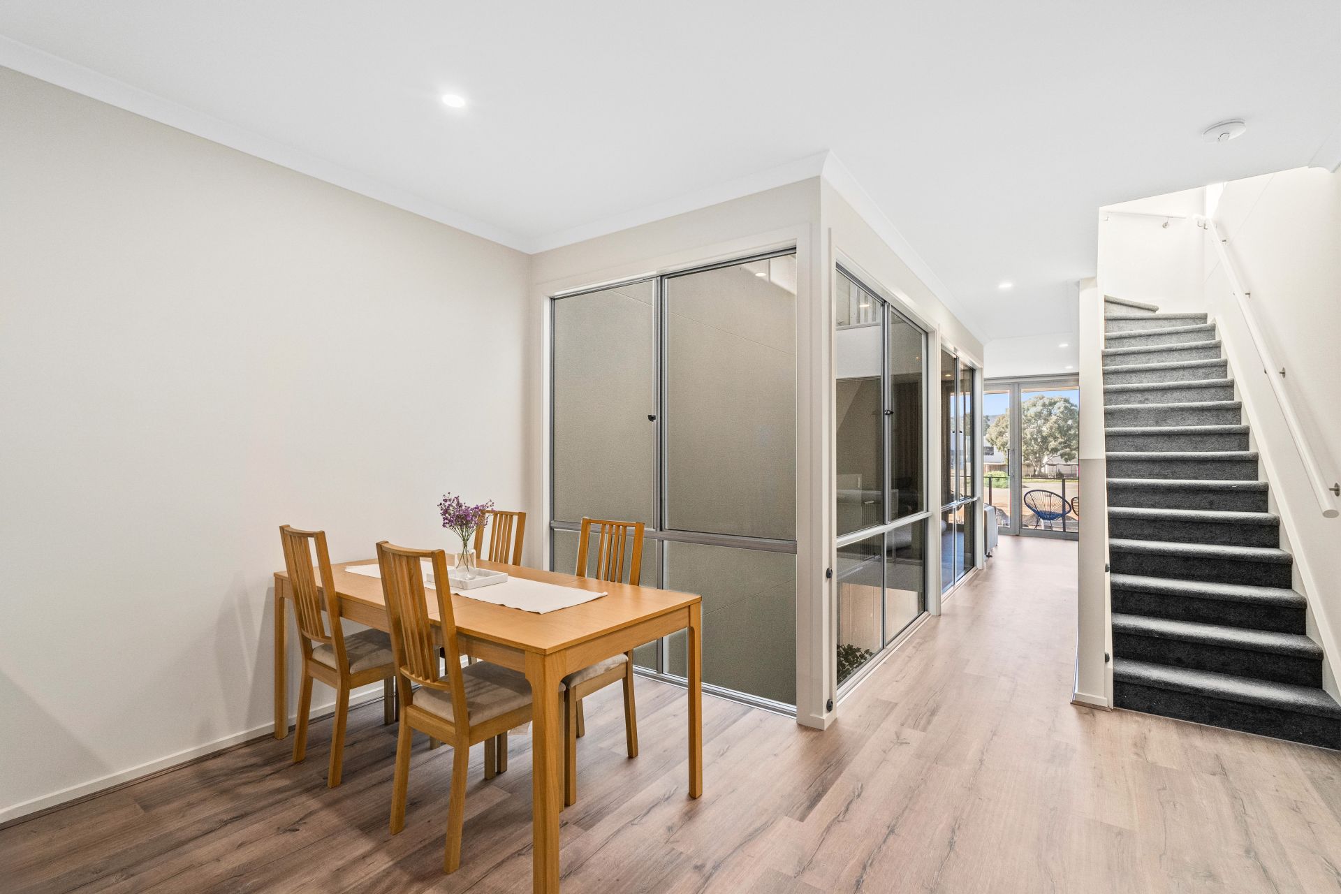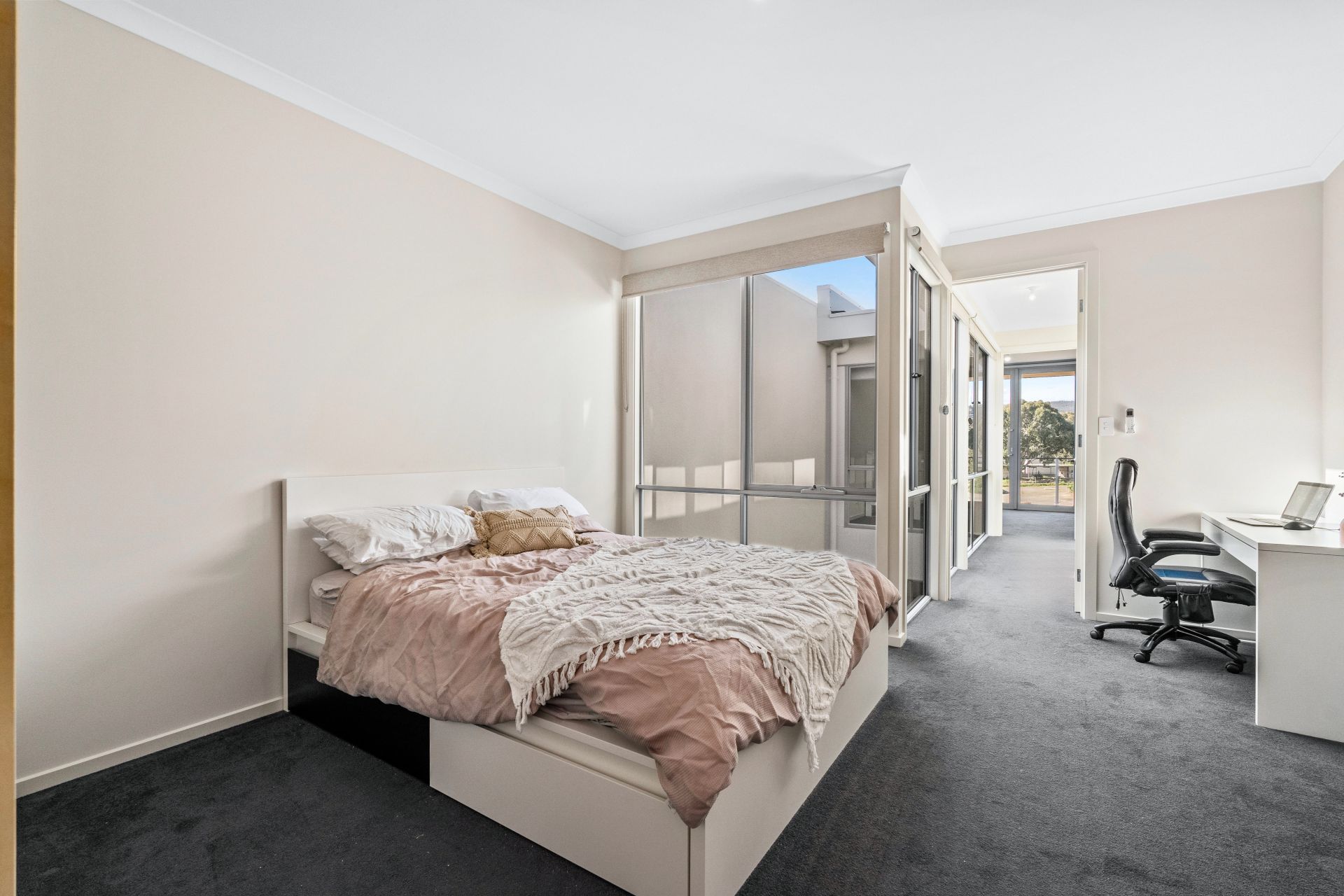 - Master bedroom on the ground level, complete with a walk-in robe and ensuite, plus access to a small courtyard