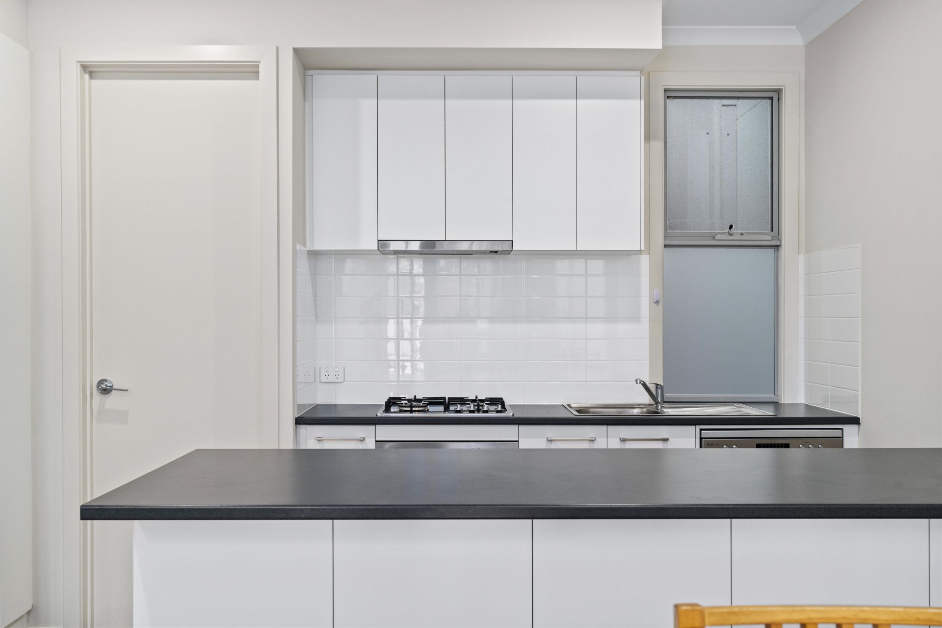 - Modern kitchen with gas cooktop, dishwasher and breakfast bar