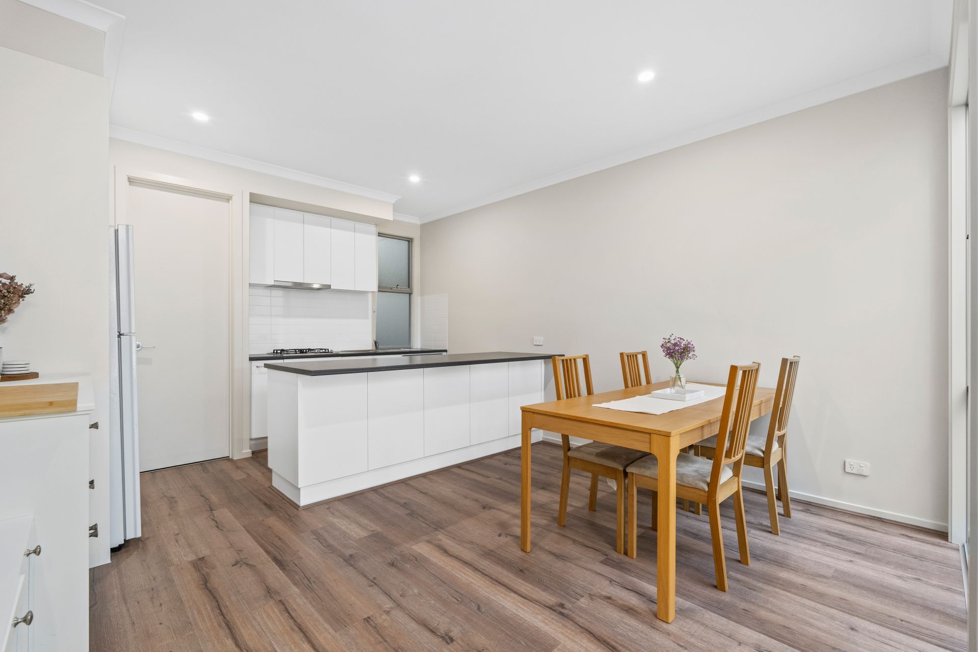 - Open-plan kitchen and dining, with a separated living area