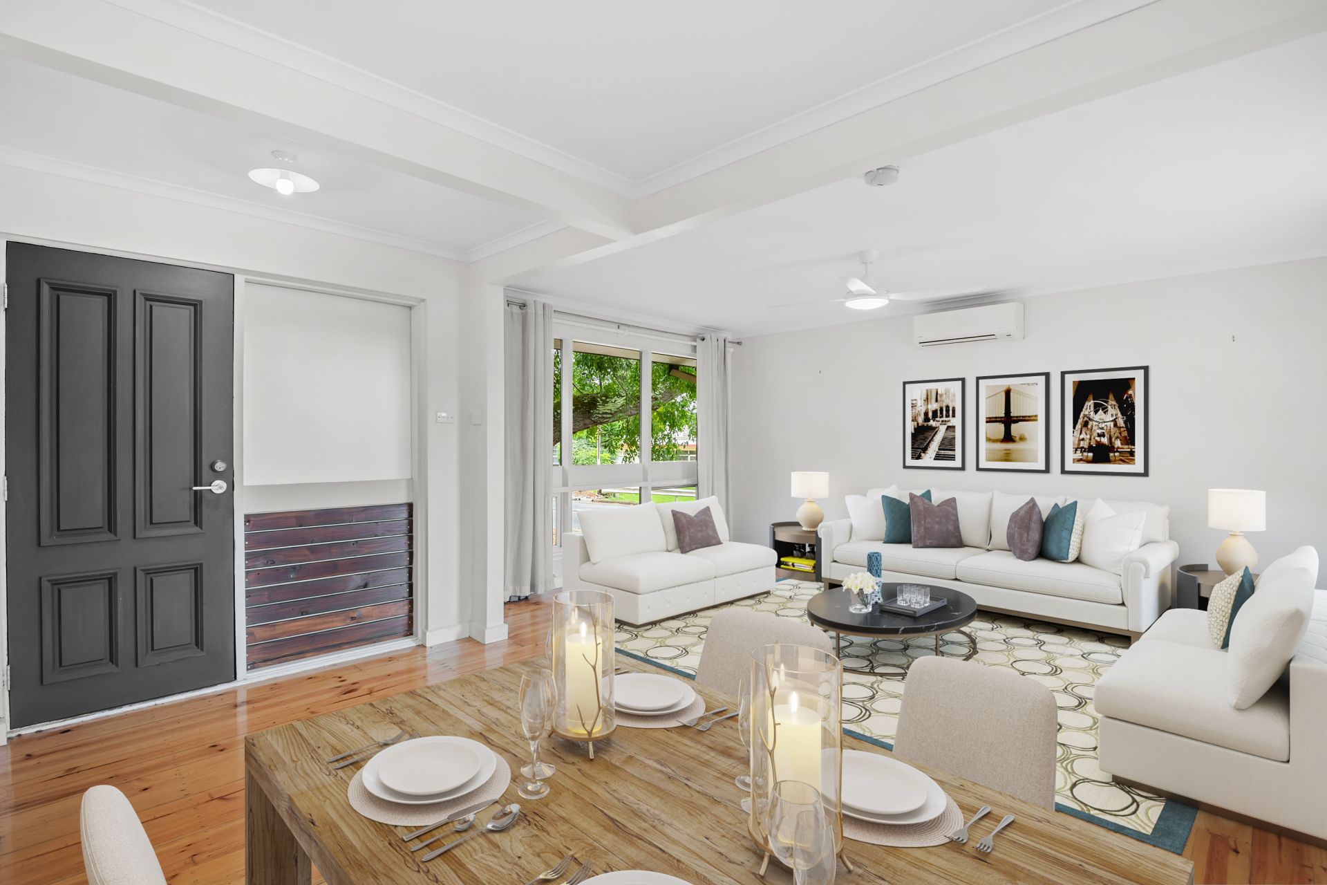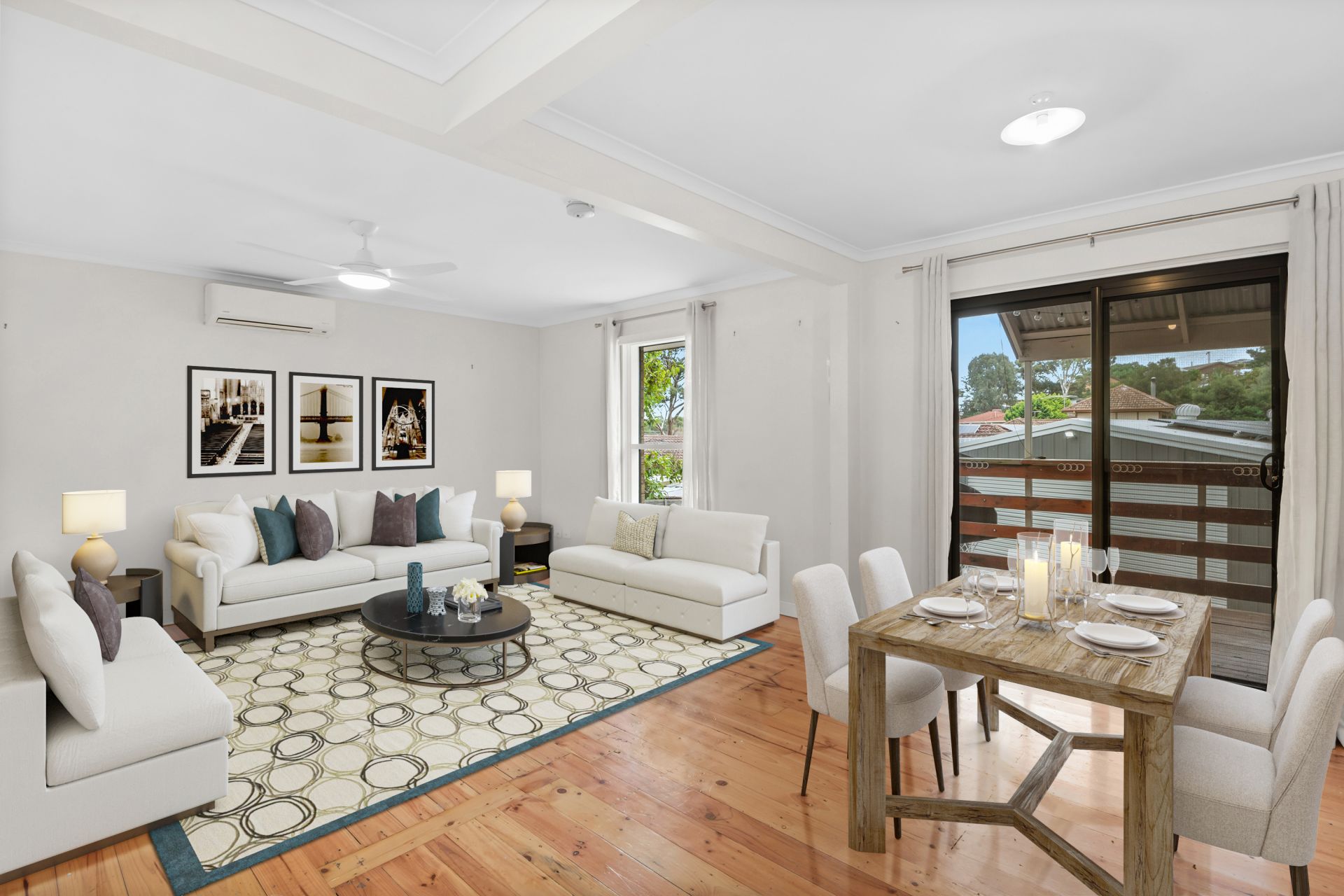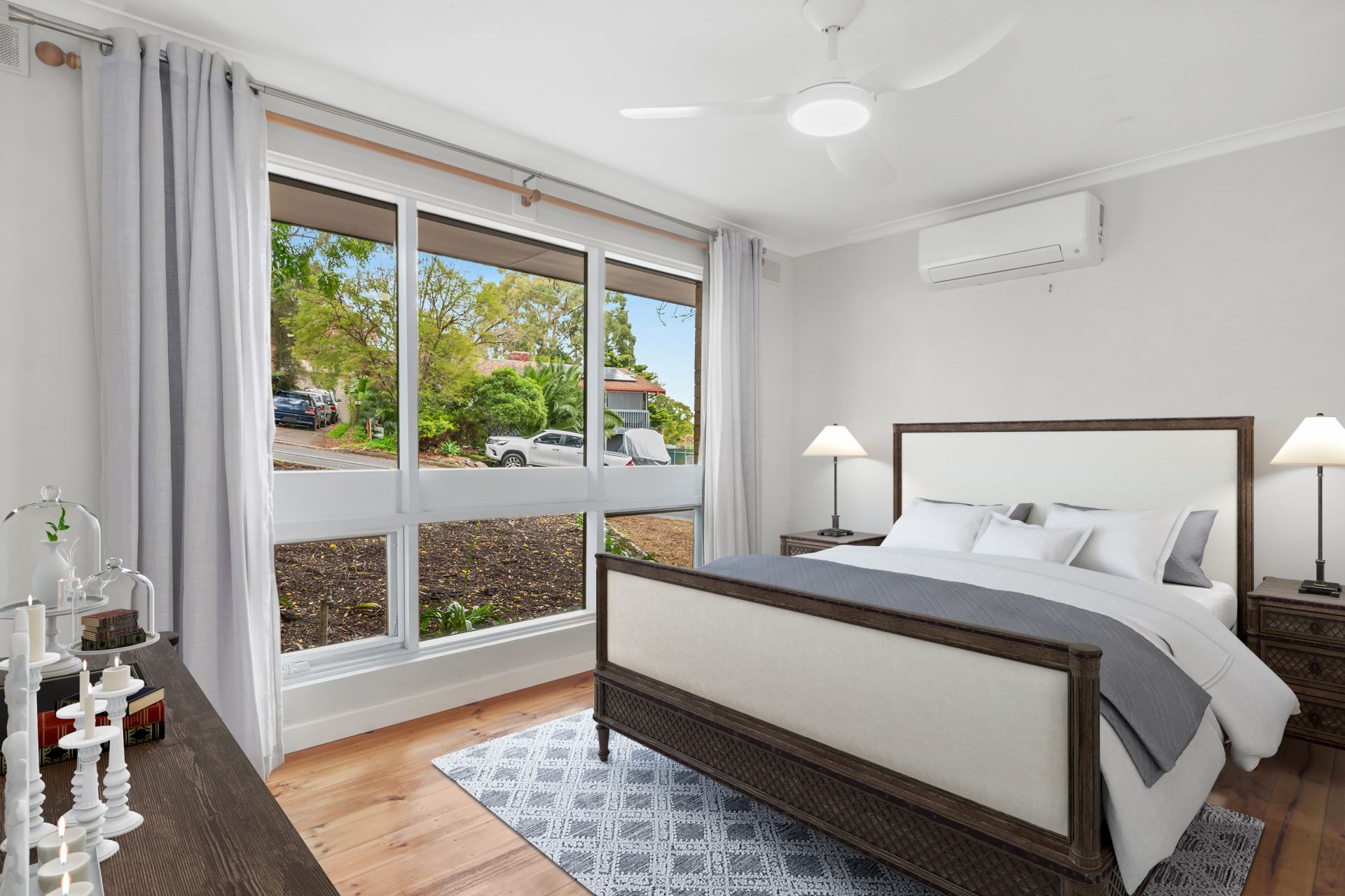 Stay comfortable with ceiling fans and updated split system air-conditioners and save on power with a grid connected 5KW Inverter solar system with 6KW of modern split cell solar panels.