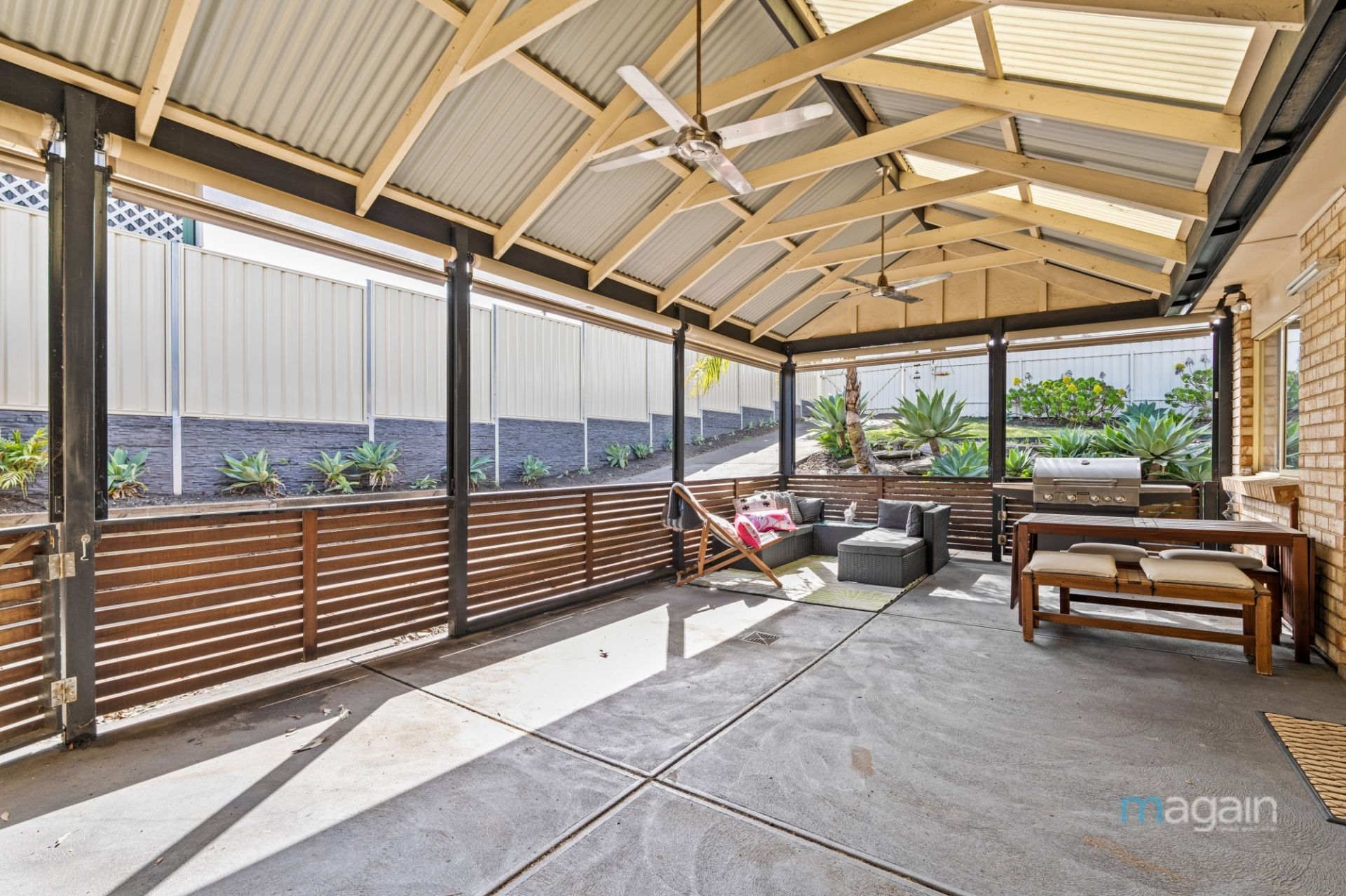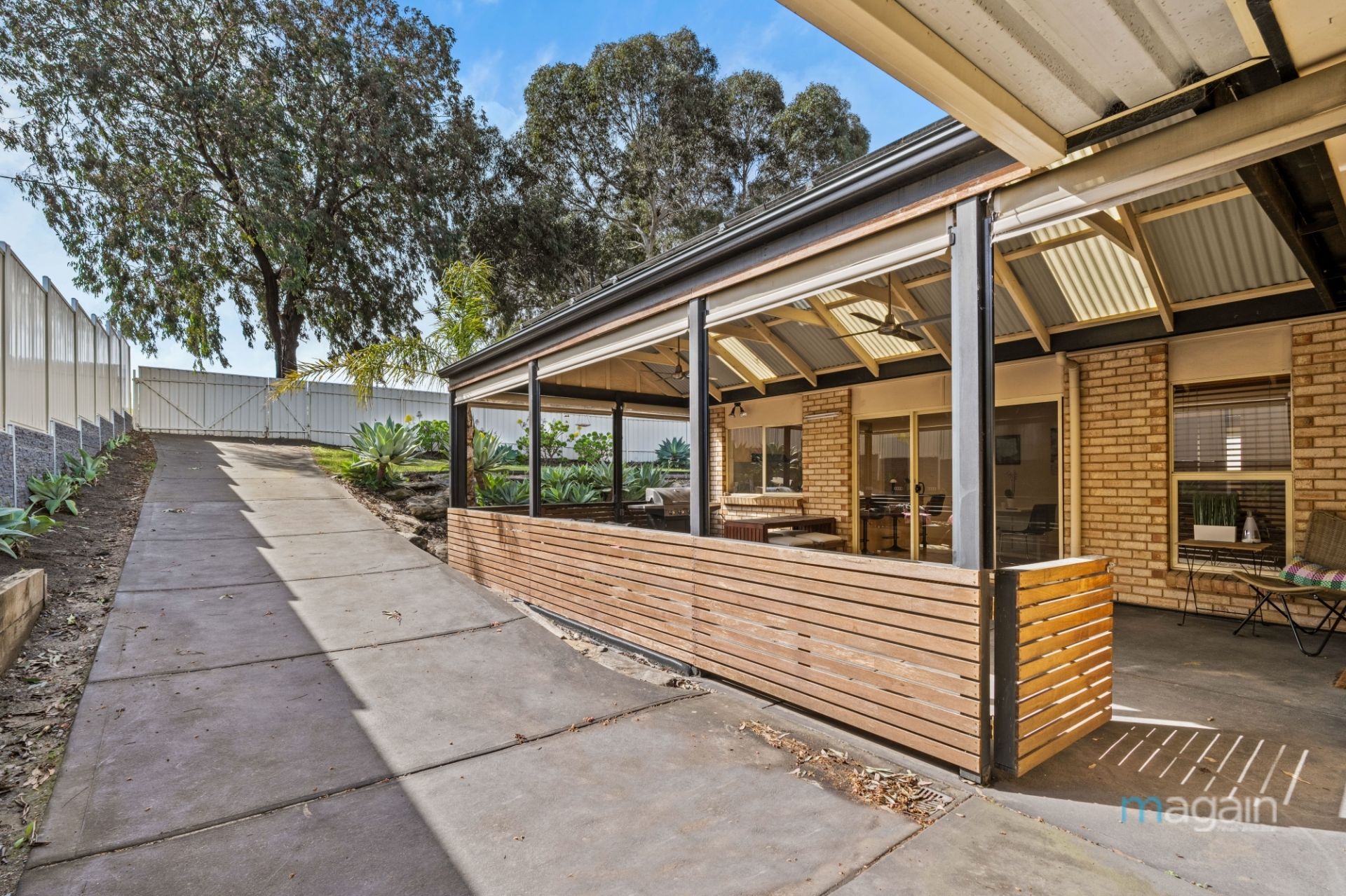 Step outside to discover an exterior that will leave you in awe. The beautifully landscaped, generously sized yard requires no further attention, making it an ideal playground for children and pets alike. Take respite under the sheltered, pitched-roof entertaining area, where you can relax and watch loved ones explore. Equipped with ceiling fans and blinds, this space is perfect for year-round entertaining with family and friends. A rare bonus is the rear access through secure gates off Chandlers Hills Road, adding even more convenience to your lifestyle.