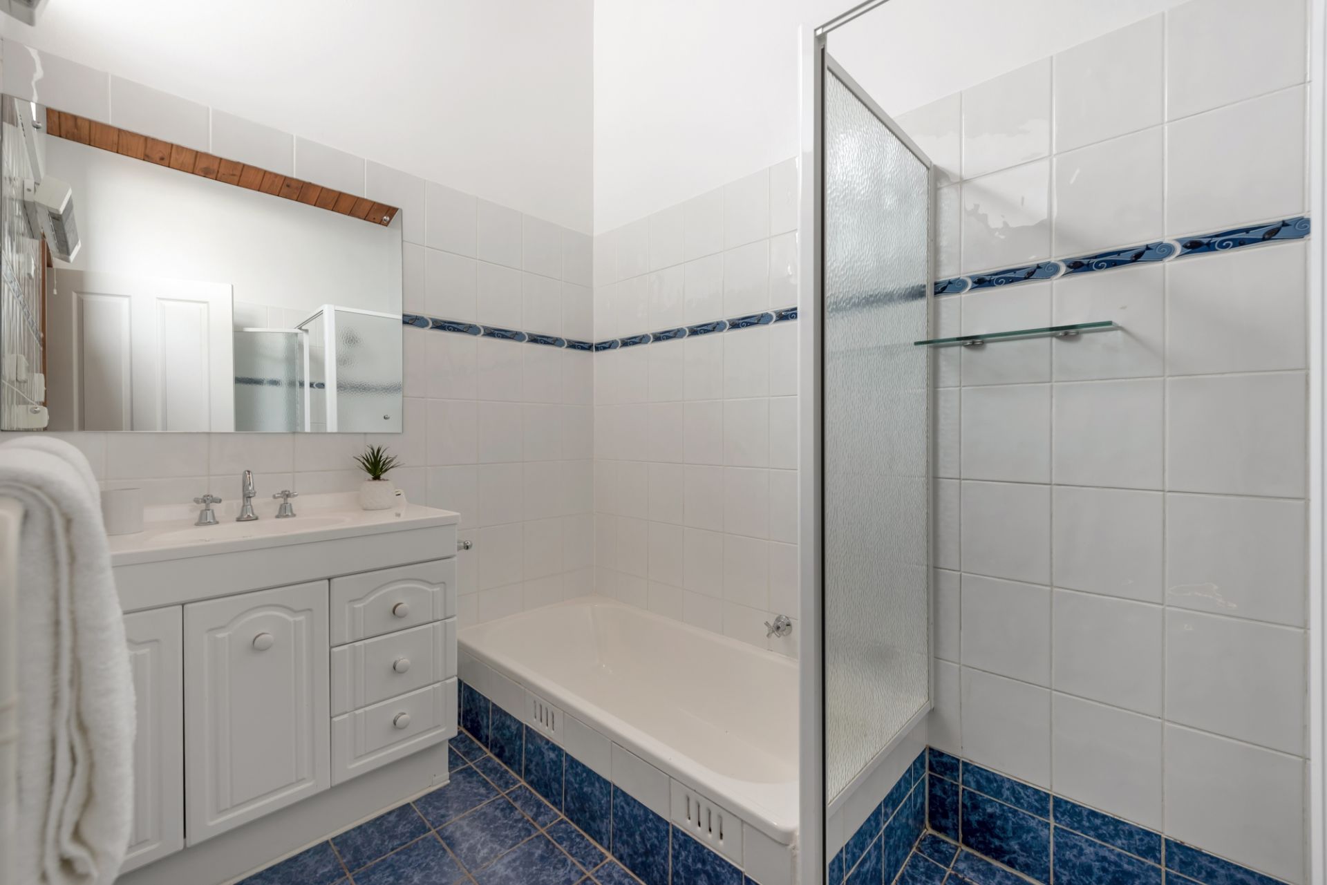 - Breakfast bar and mirrored glass splash backs to kitchen