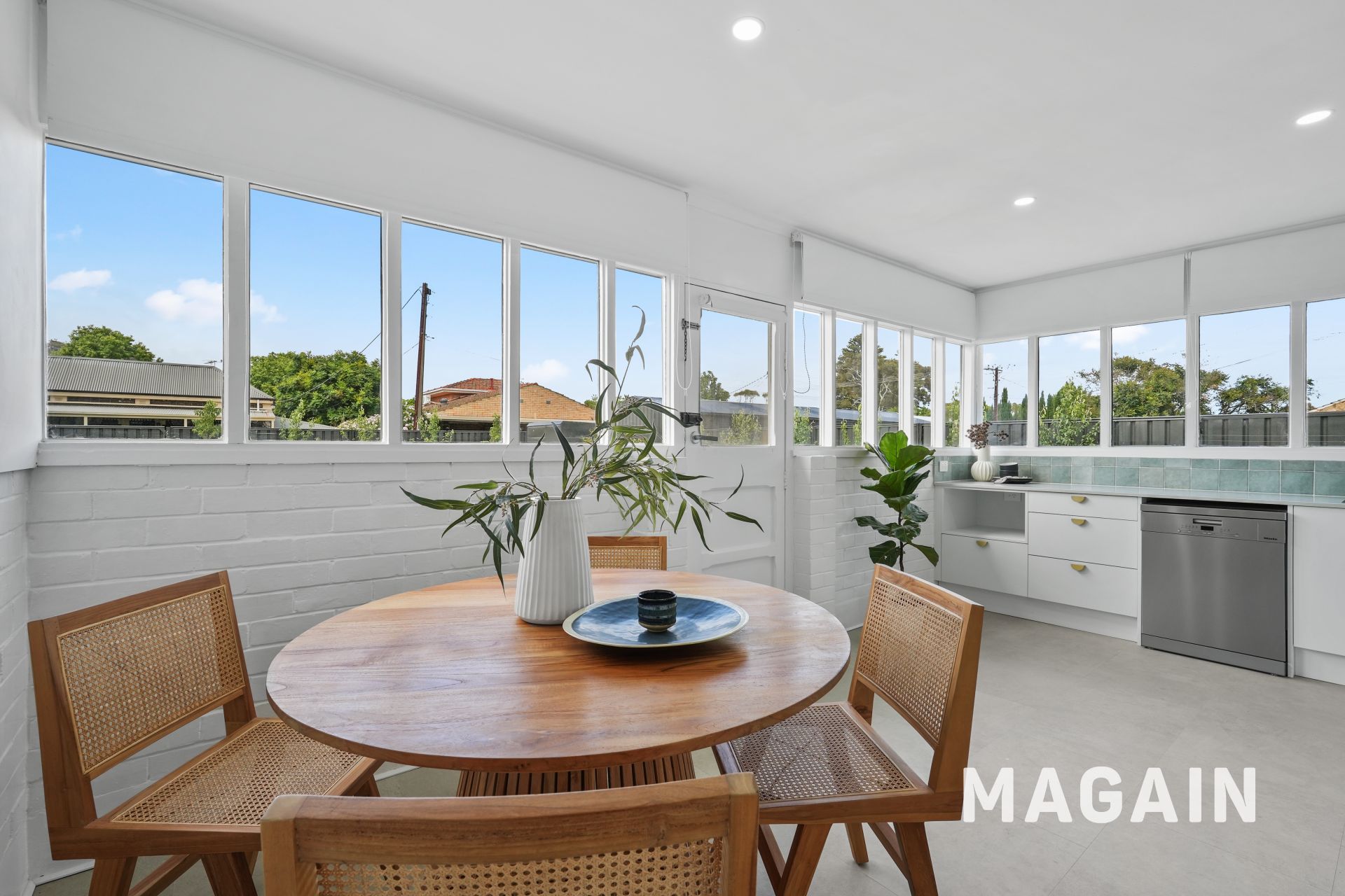 The heart of the home shines in the beautifully updated kitchen, showcasing a striking green splashback, a light-filled dining area and wraparound windows that drench the space in natural light-perfect for slow breakfasts, weekend coffees or simply enjoying views of the fully irrigated garden.
