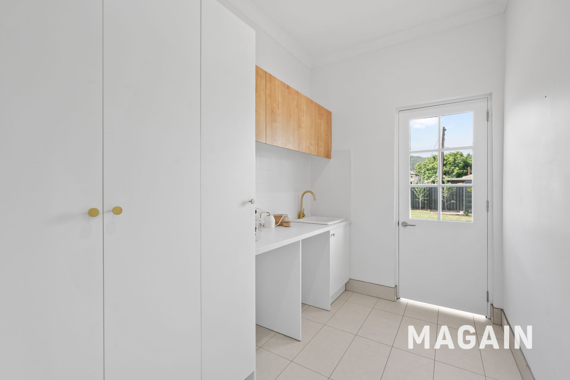 The laundry is impressively functional, with abundant cabinetry and direct access outside.
