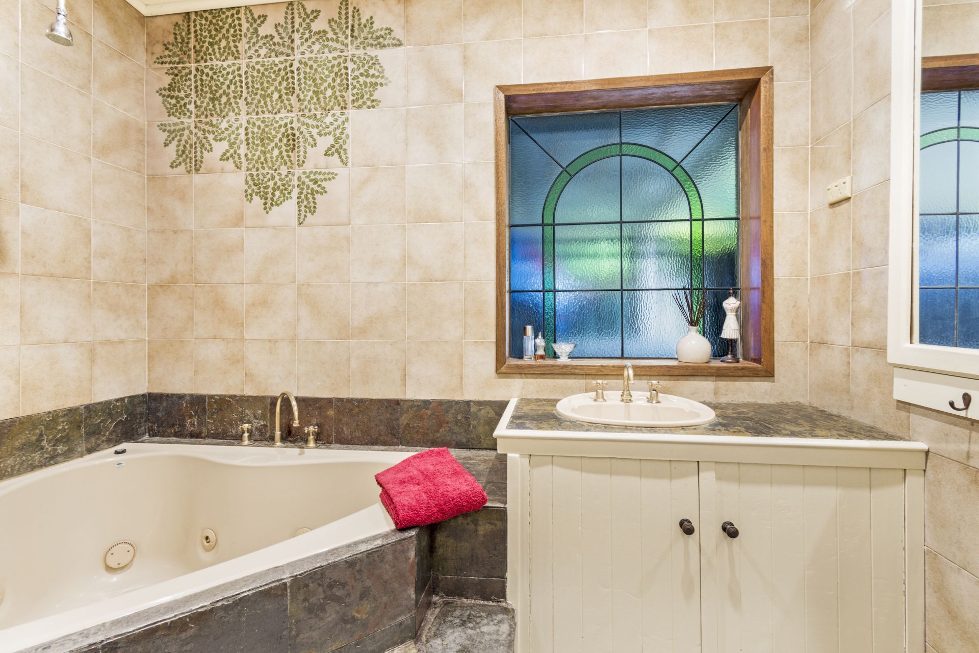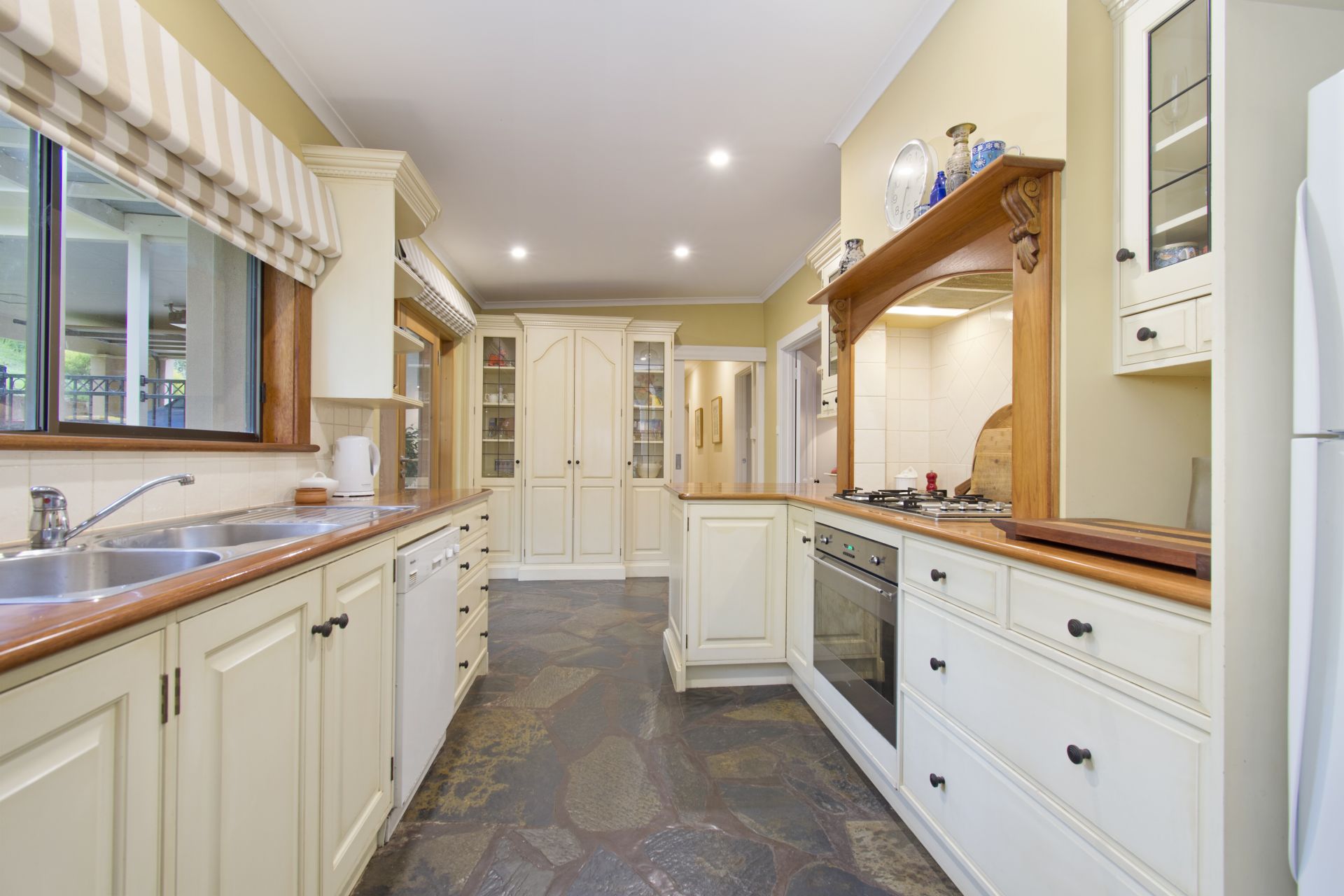 Beautifully designed for easy care relaxing living, it offers a huge split level open plan dining room with gas log fire and living room which opens out through bi-fold doors to the exterior decked entertaining area where you can relax and take in the magnificent views over the valley to the ocean. The floor plan is flexible but overall offers four bedrooms ( 3 with robes)and 3 bathrooms. It is currently laid out to include a self contained one bedroom unit with own lounge, kitchen & bathroom but can easily convert back to just one very spacious residence. The unit is currently let to an excellent tenant at $260 per week which represents an outstanding opportunity to help out with the mortgage! The updated French Provincial kitchen with Timber bench tops and stainless steel appliances with feature slate adjoins the living areas. Throughout the home are soaring ceilings, picture windows, stunning quality presentation and d?cor.