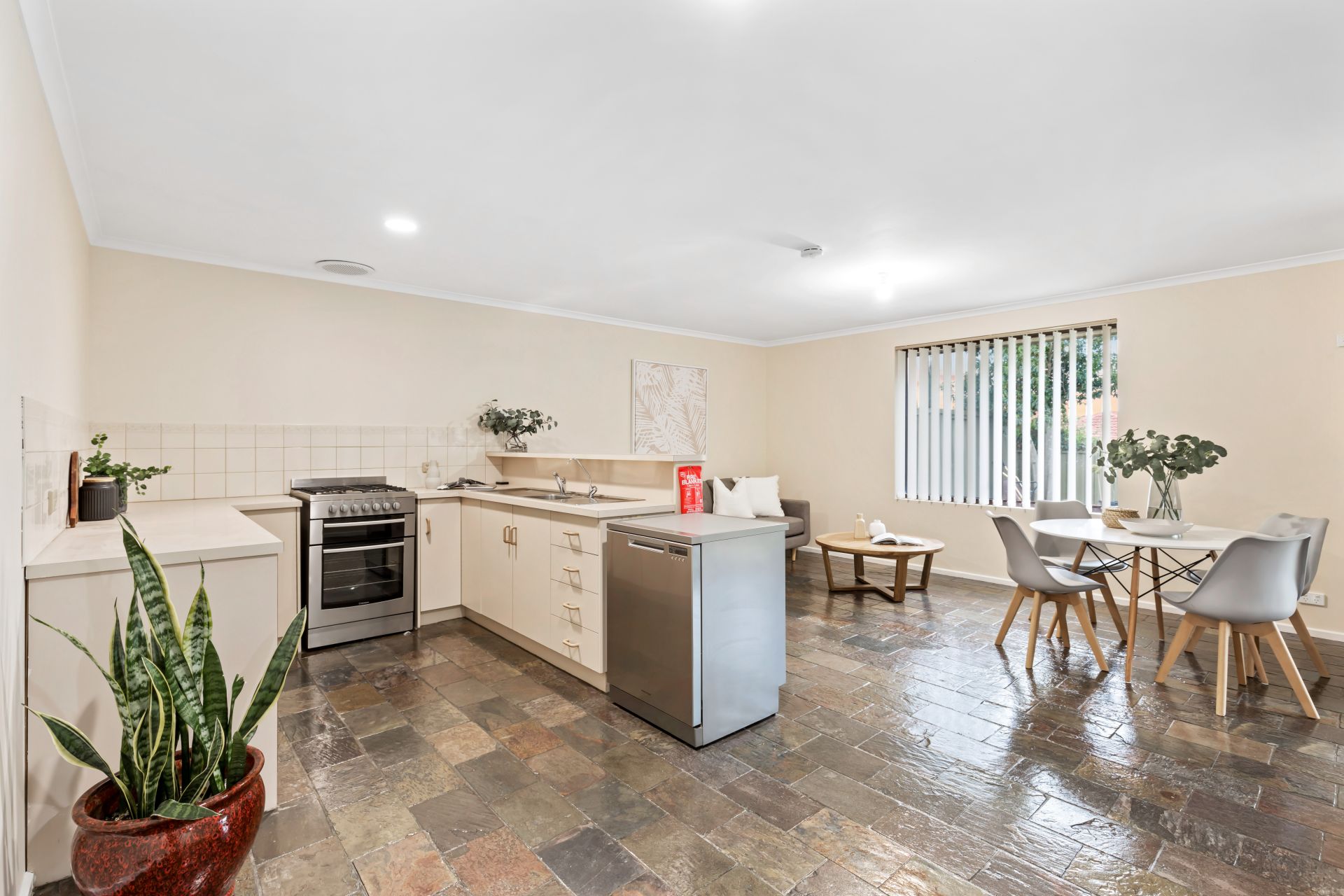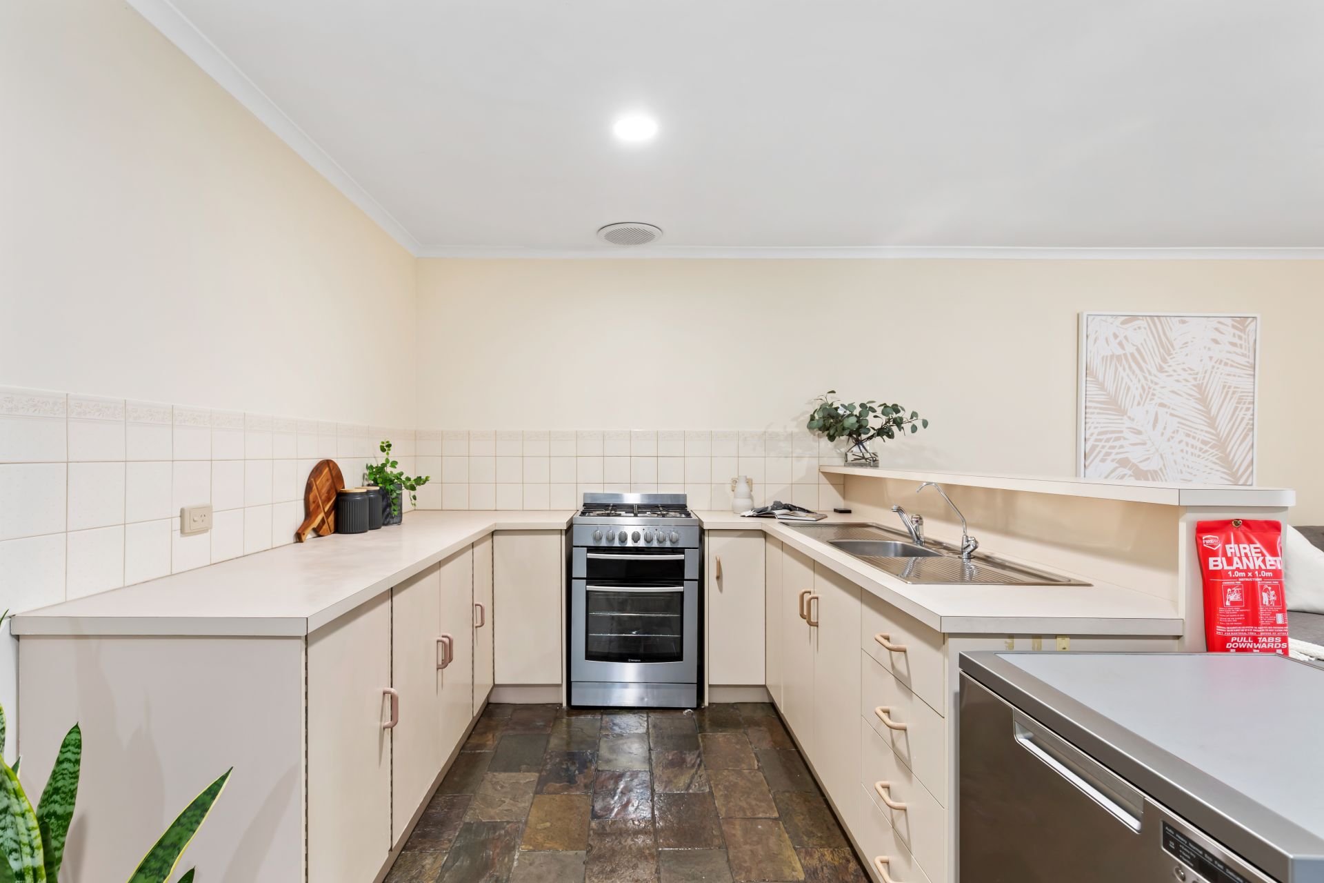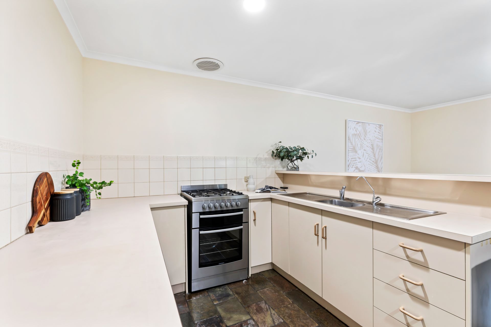- Kitchen with gas cooking (elec oven) and modern stainless steel appliances