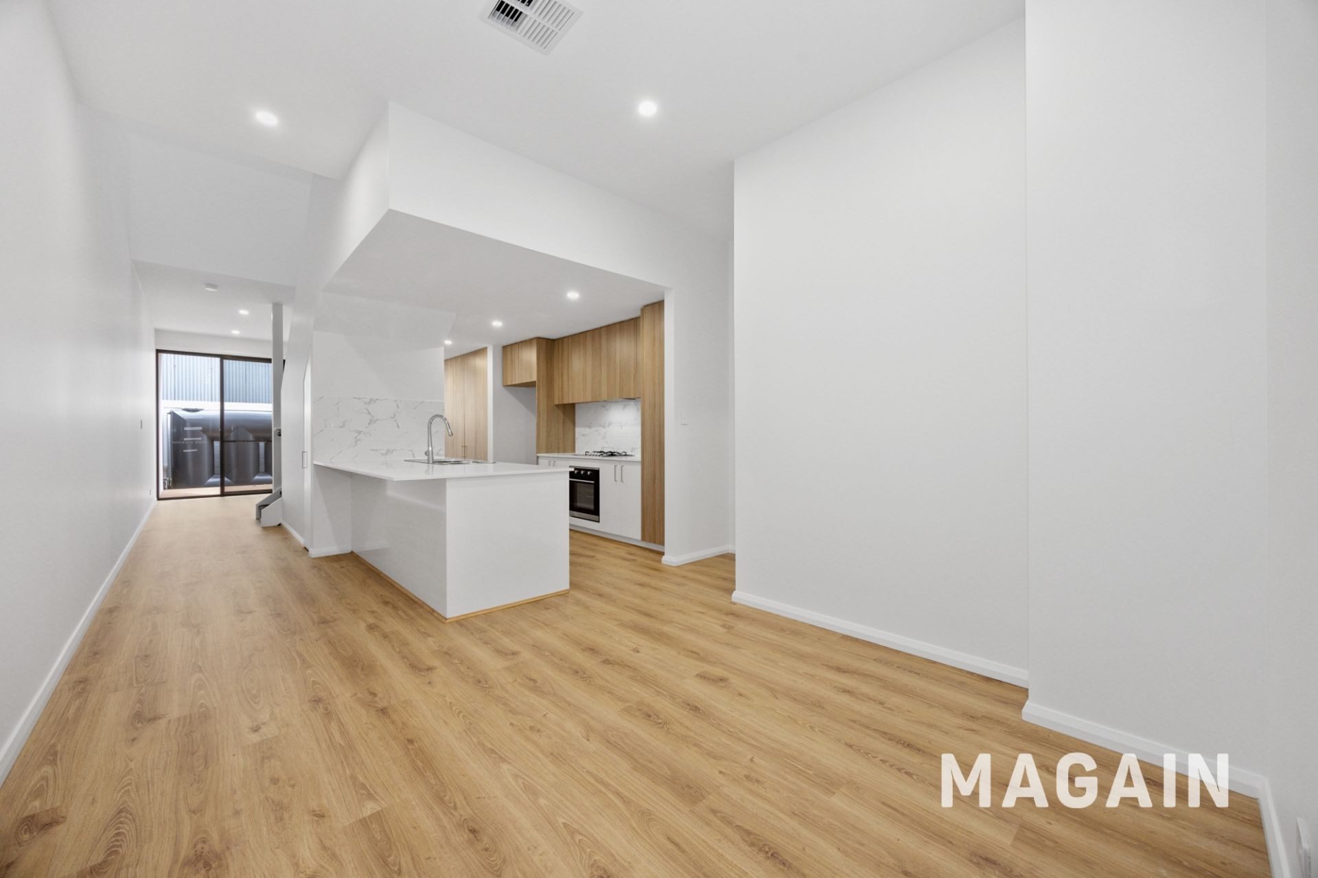 > Open plan kitchen, dining and living areas