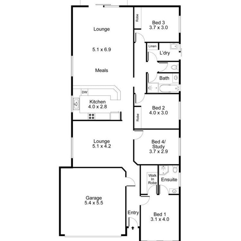 As you walk through, a formal lounge greets you, seamlessly guiding you past bedroom four/home office, to the heart of the home, an open plan kitchen, living, and meals area. The stylish kitchen is a standout, showcasing neutral-toned cabinetry, high-quality appliances, including a gas cooktop and dishwasher, and a generously sized breakfast bar perfect for casual dining and entertaining.